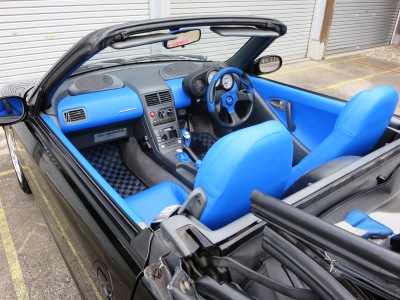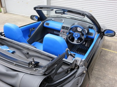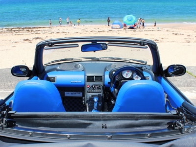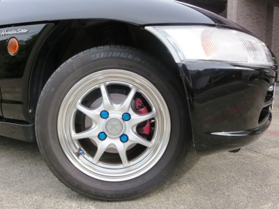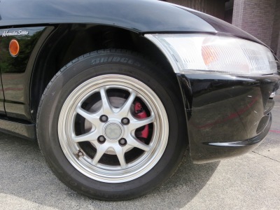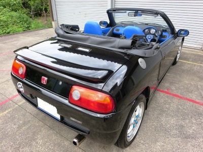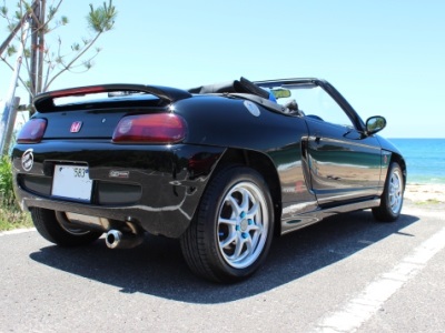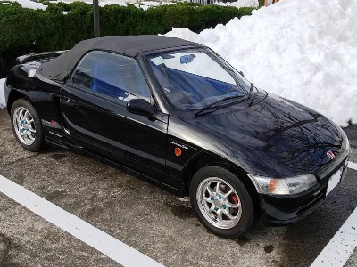 オーディオは、センターコンソールの幅が狭すぎて、市販の1DIN、2DINサイズのものが使えないため(使えるようにするためのコンソールボックスも純正ではないですが売られてはおり、実はストックしてあります)、専用オプションを装着することになります。現在、センターコンソールに収まるスカイサウンドコンポ120W(\85,000)と、左右のドアとインパネに装着されているスピーカーセットのスカイサウンド8SP(\33,000)は、両方とも車を買った時についていたもの。これに6連奏CDチェンジャー(\65,300)を追加しました。ただでさえ狭いトランクは、こいつのせいでティッシュ1箱入れるのがやっとです。 シートベルトには無限のシートベルトパッド(\5,000)を1996年9月に装着。カタログには「安全性を向上させたロングタイプ。胸から肩までを確実に保護します。」とありますが、どちらかと言えばドレスアップ商品です。感触はいいのですが、ロックを外した時にベルトがスルスルと自動で収納できなくなるのが欠点でしょうか。 ペダルはカーメイトのロングセラーRAZO RM35(\4,880※)を1997年6月に装着。足元の空間が狭いため、このでかいペダル同士がくっついてしまい、セッティングには苦労しました。ブレーキとアクセルを同時に踏まないよう慣れが必要です。 ナビゲーションはパイオニアのカロッツェリアAVIC-X10TVを1997年7月に装着。この機種は2台の車に自由に載せ替えができるのがウリなのですが、取り付けキットやアンテナなど本体をのぞく全てを2セットずつ購入することになったので、夏のボーナスは一瞬で消えました。 ハードトップは、どこから発売されているものも高く、必要もないだろうと最初は買う気がなかったのですが、1995年の冬に雪の重みでたわんでいる幌を見て翌年9月に購入を決意。数ある中で唯一リアウィンドウがガラス製(他社のは全てアクリル製で耐久性に不安あり)の無限のハードトップキット(\246,000)を選びました。ガラスの分だけ重いため、取り外しは2人がかりとなります。1999年以降の冬は、新居とともに建てたガレージのおかげで未使用です。このハードトップ、長らく絶版となっており幻のアイテムとなっていましたが、2001年春に無塗装で200セット限定再販されました。 ストラットタワーバーは、GAB(ウィングジャパン)製(\18,000)。1997年11月に車雑誌の懸賞で、全国で2名という高倍率に当選。フロントのボディ剛性を高め、ハンドリングの楽しさを倍増させるというアイテムなのですが、極限の走りをしない自分にはその変化がよくわかりません。まあ、愛車が長持ちすると思えば…。 あとは、純正OPのセンターアームパッド(\3,800)、マップケース(\3,000)を車の購入時に装着。前者は助手席用のようで、ドライバーの肘は全然届きません。後者は収納部の少ないビートには結構便利。また、車購入後まもなく、ウッディなカー用品シリーズ 「Fクラッシック」のウッド風ドリンクホルダー、ウッド風バックミラー(助手席用も)、サングラスクリップ、そして別メーカーのウッドシガーライターを購入。さらにウッドシートを買ってインパネ、エアコン吹出口などをウッド調にし、より統一感を出してみました。ステアリング下部には温度計・湿度計ツインメーターを装着。 (※マークのあるものはカー用品店などでの店頭販売価格。それ以外のものは全て定価で表示。) 今のところこれだけですが、ビートオーナーの方の何かの参考になれば幸いです。いろいろな雑誌やホームページを見ていると、この程度では足元にも及ばないビートがゴロゴロおられるのですが…。 勤め先には、ビートのオーナーが私以外に2人もおられました。W林氏所有のクレタホワイトの無限ローダウンサスキット仕様車(この前はイエローのビートに乗っておられました)と、M澤氏所有の全国限定500台という希少車、キャプティバブルーパールのバージョンC。残念ながらW林氏は1998年に転勤、M澤氏も2001年に転勤されてしまったのですが、M澤氏と入れ替わりに転勤されてきたS本氏は、またもやビートオーナー。何という偶然(念のため私の勤め先がホンダ関係というわけではありません)。S本氏のビートの色は赤、HKS製のマフラーを装着した気合いの入ったビートです。W林氏いわく「無限のローダウンサスは固すぎ。カタログにはノーマルの乗り心地そのままに、とか書いてあるけど、車がはねまくって運転しながら酔いそう。」とのことでしたが、その後なじんできたらちょっと改善したようです。しかし、ビートは(というか日本車は)、タイヤとボディーの隙間が広すぎてカッコ悪いので、やはり車高を下げたくなるのは当然の心理。ノーマルサスのマイカーより、W林ビートの車高は2cm程下がっています。 このW林ビートは2001年6月、車検時に無限製のエキゾーストマニホールドとブレーキパッドを装着し、さらに2004年、ヨットなどに使われるレザーを使って純正シートの張り替えを実行。タイプR風に真っ赤になりました。 ※このS本氏で