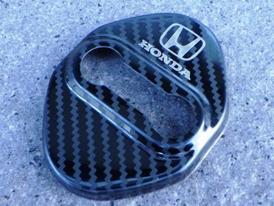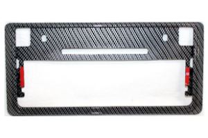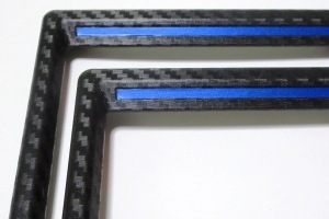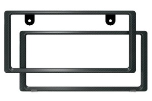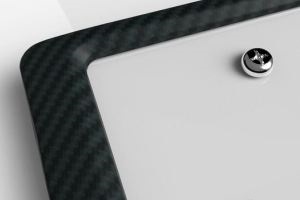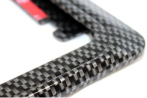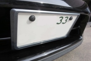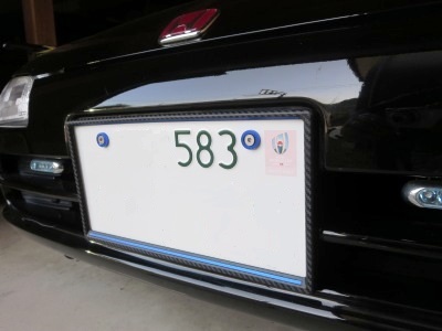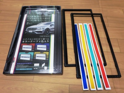 従来のナンバー プレートのような金属板への直接塗装ではなく、図柄をプリントした樹脂シートを金属板に貼り付けてあるので、洗車時などの取り扱いには十分注意しないといけないようですが、触った感触は従来のナンバー プレートとまったく変わりません。裏面は金属板の地がむき出しになったシルバー1色になります。 ただ交換するだけでは芸がないのでフレームも交換することにしました。2,000円以下で買える手軽なカーボン調ナンバーフレーム2枚セットを ネットで探してみると以下の4点が売れているようです。