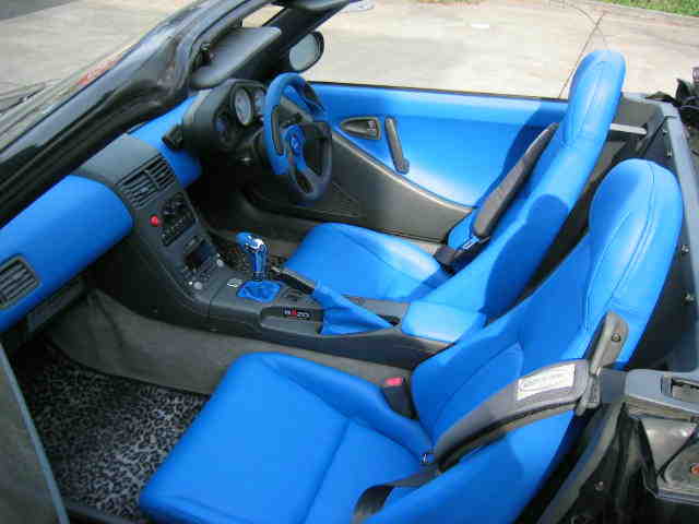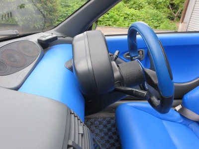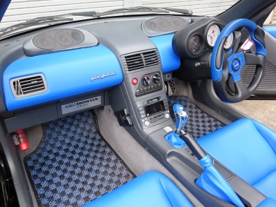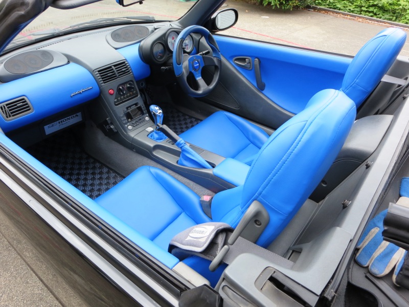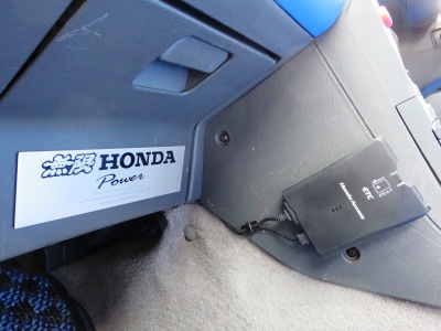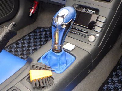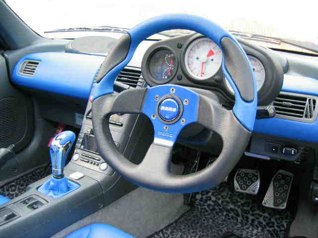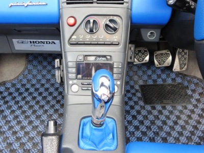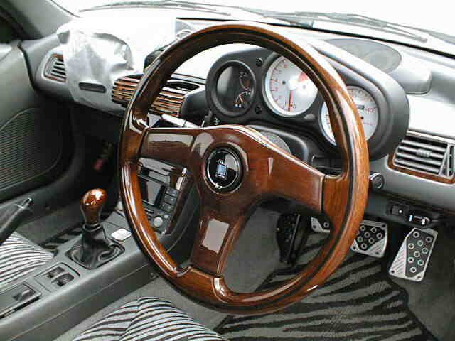 ちょっとお遊びで流行のタイプR仕様に。真紅のHエンブレム(F/R各\3,000)だけならホンダ車オーナーは結構つけている人がいるのでステッカーも購入(初代インテR用サイド各\2,000/リア\1,600・リアは2013年夏にちょっと恥ずかしくなってはがしました)。ちなみに内装は、タイプRらしからぬカーボンもチタンも使わないウッド仕様。オー○ファッション誌などにいわせると「統一感がない」というところでしょうが、まあ好みの問題ということで。サイドマーカーとリアランプにはフィルムスプレーでスモークをかけてみました。バックランプ部分は塗装してはいけないことになっているので、そこはしっかりマスキングしてあります。マフラーは、無限製に替えるまではノーマルに純正オプションのエキパイフィニッシャーを装着していました。最終型のバージョンZでは標準装備になったぐらいの必需品(これがないとものすごく貧弱に見えます)。 このエキパイフィニッシャーは、車検から帰ってきてまだ間もない1999年11月2日の朝、通勤のためガレージから出した時に、なくなっていることに気がつきました。フィニッシャーが取れたというか、もともとのノーマルマフラーの排気口が腐食してボロボロになっており、その一部ごと取れてしまったようです。 しばらくボロボロのマフラーで我慢していましたが、2001年ついにマフラー新調を決意。5月13日に無限製の「スポーツサイレンサー18000-XG4-K1SO」(\65,000)を装着しました。無限製の初期型のマフラーはセンター出しで、「お、無限製!」と一目で分かる感じだったのですが、現行型はノーマルと同じ位置で、しかもデザインが純正オプションのエキパイフィニッシャーを付けた状態とパッと見が一緒なのがちょっと悲しいのですが、性能は折り紙付き。開発者の方も、初期型のマフラーは見た目重視、2代目のマフラーは性能重視と言っておられました。 2001年4月7日、スタッドレスタイヤからノーマルタイヤに履き替えた5日後、桜も満開で暑くなってきたなあとエアコンの温度調節つまみをひねったら、バキッとつまみにつながっているプラスチック製の軸が経年劣化で折れてしまいました。全く同じパーツである隣のエアコンの強弱調節つまみを抜いてみたら、こちらにもヒビが…。即ディーラーに注文し、マフラー交換と同時に交換しました。 2001年11月2日、9年目の車検に出しました。交換品は、オイル関係以外では、バルブ(200円)、ベルトコンプレッサー(1,000円)、ベルトACジェネレーター(1,600円)ぐらいで、総支払額7万円ジャスト。 2001年6月16日、あまりのタイヤの劣化具合にさすがに交換を決意。フロントは以前からサイドウォールにヒビが入っていて気になっていたのですが、溝のなくなった接地面にまでヒビが入ってきたので、これからの梅雨の季節、命に関わると思い、フロントのみブリヂストンのGVに交換。ついでに窒素も充填。リアはあと1年ぐらい使うことに。7月5日には7000kmぐらいほったらかしだったオイルを交換。もちろんオイルエレメントも交換しました。 MYビートのインテリア(初期)