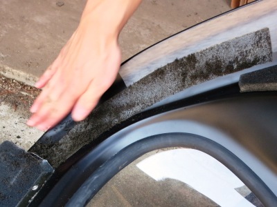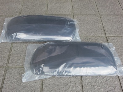 ヘッドライトカバー、テールライトカバー共に、裏面周囲に透明な厚みのある両面テープがぐるっと貼ってあり、その保護シートを剥がしてライトに貼り付けるだけの簡単装着仕様。