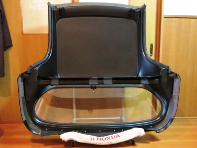 2017年秋・リアライトトラブル&18年ぶりのハードトップ装着 7月31日に、自宅のリフォーム工事中、ずっとガレージから出せなかったビートを久々に動かそうとバッテリーをつないだ瞬間、キーも刺してないのにブレーキランプが点灯。お盆明けにディーラーに引き取られ、8月26日にやっと修理が終わって返ってきました。ストップランプスイッチアッシー(1,414円)交換で工賃込3,460円でした。 ビートの代わりに置いていってくれていた代車のN-WGNがどうしても翌日必要だったとのことで、自走で約70kmも離れたディーラーから深夜届けて下さった担当のK氏。いつもお世話になっております。本当にご苦労様です。K氏も実はビートオーナー。最近ガソリンタンクが傷んだということで私のビートも同じところをチェックして下さったのですが、大丈夫だったようで一安心です。 9月9日に、80km離れた実家から次男に手伝わせてビートのハードトップを18年ぶりにビートに装着し回収してきました。1996年秋に新品で購入して3シーズンのみ冬期に使用し、その後ガレージ付きの新居に引っ越したため、ずっと実家の納屋に眠っていたもの。ウインドウ下部両サイドのスポンジが劣化していましたが、布をかけて保管してあったため、それ以外は予想以上に良いコンディションを保ってくれていました。今後は自宅で保管することにします。