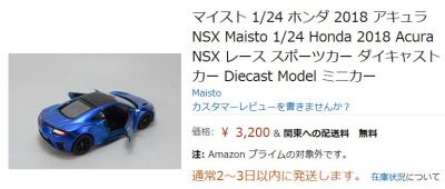 | Maisto 1/24 SPECIAL EDITION アキュラ NSX 2018 ホワイト/3,600円(amazon価格税 込) | |