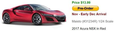 珍蔵系列1/24アキュラNSX2018レッド&ブルー /3,200円/$13.99 |
