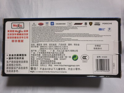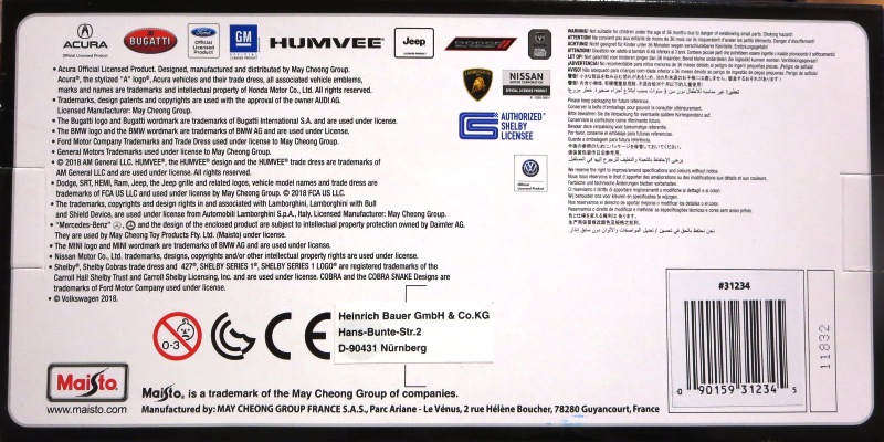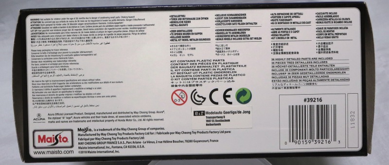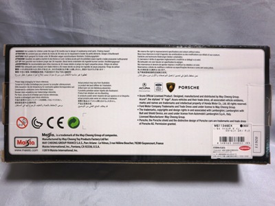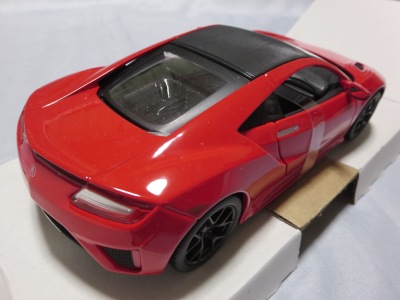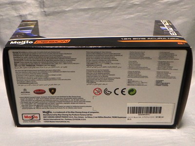 2018年8月28日ヤフオクに初登場したマイスト1/24「2018 Acura NSX」のブルーモデル。 開始価格が送料込み6,000円と高かったため、Amazonで同じものを送料込み3,200円で発見し注文したところ、上海から中国語パッケージが送られてきたのは上記の通り。 その後、通常の英語パッケージになかなか巡り会えなかったのだが、2019年9月17日、約1年ぶりにヤフオクに英語パッケージが送料込み3,200円で登場。無事落札入手することができた。 裏面にドイツ語のステッカーが貼られているため、ドイツで販売されていたものかもしれない。 |