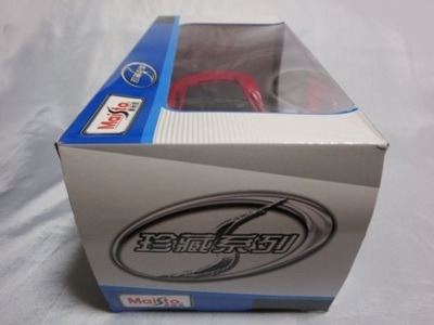 2018年8月28日ヤフオクに初登場したマイスト1/24「2018 Acura NSX」のブルーモデル。 開始価格が送料込み6,000円と高かったため、Amazonで同じものを送料込み3,200円で発見し注文したところ、上海から中国語パッケージが送られてきたのは上記の通り。 その後、通常の英語パッケージになかなか巡り会えなかったのだが、2019年9月17日、約1年ぶりにヤフオクに英語パッケージのレッドモデルが送料込み3,200円で登場し、無事落札入手することができたのも上記の通り。 そして2020年6月7日に英語パッケージのブルーモデルがヤフオクに再登場。開始価格の1,000円で入手することができた(送料770円)。 先に入手したレッドモデルはドイツで販売されていたもののようだったが、今回入手したブルーモデルは京商のシールが貼られた正規輸入品。定価が3,000円だったことも判明した。 |