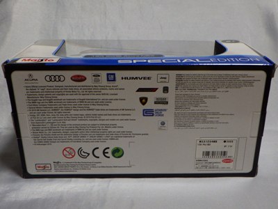 | 2002年10月米国より取り寄せ。日本未発売。着せ替えミニカーともいうべきものでエアロパーツを自由に装着できる。スケールはおよそ1/43。 | 2002年10月米国より取り寄せ。日本未発売。着せ替えミニカーともいうべきものでエアロパーツを自由に装着できる。スケールはおよそ1/43。 | ||