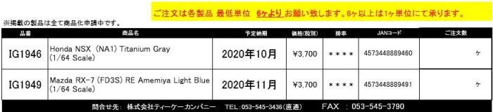 20/6/11発売済 1/43「IG1363 Honda NSX-R(NA2) ホワイト」 (17,500円税別・19,250円税込・2019/7/12受注開始・120台限定) 21/4/16 1/64イグニッションモデル「IG2318 IG-Model Showroom Diorama with 2cars」(32,500円税込・2021年3月29日受注開始・2021年4月16日一斉発送・オンラインショップ100台限定品・IG1861のスープラとIG1945のNSX(NA1)が付属 )