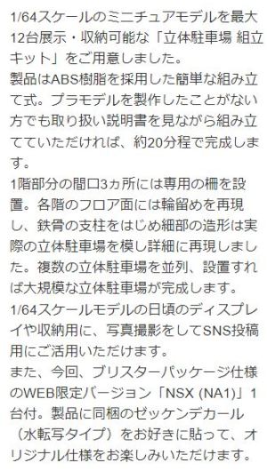 2020年7月28日に受注が開始され、2020年10月14日に発売された1/64NSXカスタムシリーズのうちの1台。 |