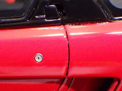 された。 このイエローモデルは100台限定だが、台座やパッケージにそれが記載されているわけではなく、シリアルナンバーもない。 発売当時買いそびれたため、2021年2月にヤフオクで約33%オフで出品されているものを入手した。 同じく買いそびれていたレッドメタリックも同額で入手できたが、ホワイト(DKバージョンではない方)は落札し損ねた。 クリアのケースカバーがシール等で固定されていないのは撮影時にありがたいが、例のごとく接着されているのではと思われるくらいケースカバーが 台座にしっかりくっついているので外すのに苦労した。 力任せにやると、外れたクリアケースでミニカー本体を壊しかねないので注意が必要。台座とケースカバーの間に爪を入れて少しずつ外していくしかないのだが、革張りの台座は傷が付きやすいので、それも注意が必要である。 |
