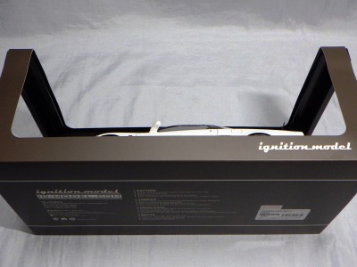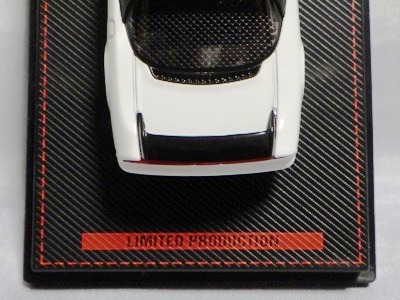 2016年7月29日に402シルバーと同時に発売された403ホワイト。実在するカスタムカーを3Dスキャニング取材し、寸法、造形に精度を出し、オリジナルデフォルメを加えたボディフォルムがイグニッションモデルのこだわり。内装も可能な限り実車を忠実に再現している。主な仕様は各18インチワイドホイールにローダウン、大径2本出しマフラー、左右レカロシート、レッドキャリパーを装着。シンプルなカスタム仕様でモデル化している。生産台数180台。 |