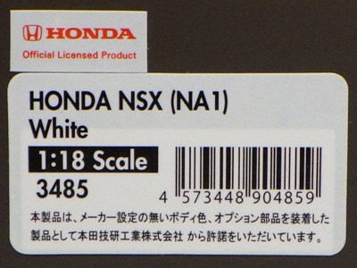 | 1/18IG0404NSX(NA1)1990ホワイト/\25,380/イグニッションモデル | |