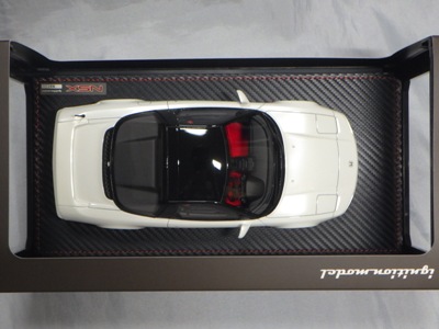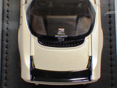 2019年8月9日受注開始。2020年6月11日発売。 ドリキンこと土屋圭市氏の愛車をレジンモデルで再現したもの。DVD「ホットバージョン」のタイムアタックほか、多くのメディアに登場していた有名な車両。 プロドライブ18インチホイール、フロントアンダースポイラー、純正リアウイング、リアディフーザー、左右出し大径マフラー、バケットシート、モモタイプステアリング等を装着したローダウン仕様。各部にオリジナルステッカーも再現している。 ケースカバーには土屋氏のサインをプリント。140台の限定品。 接着されているのでは?と思われるくらいケースカバーが外れなかったので、そのまま撮影した。 |