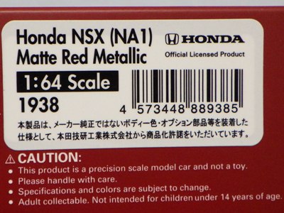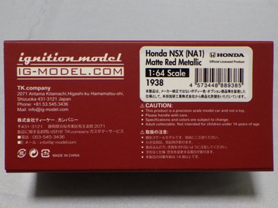 | 1/64 IG1938 ホンダNSX(NA1)カスタム マットレッドメタリック/\3,700税別・\4,070税込/イグニッションモデル | ||||||||||||||||||||||||||||||||||||||||||||||