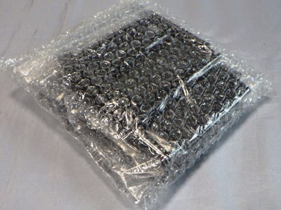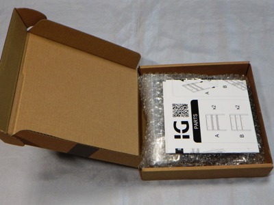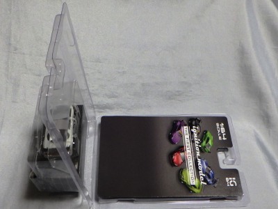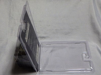 ▲箱からビニールに包まれた商品を取り出し、クリアケースから出したものが左画像。プラスチックのフレームが右画像の紙パッケージで覆われている。