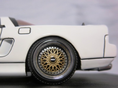 2024年5月28日にレッドとホワイトの2種、6月28日にシルバーとレッドの2種の受注が開始され、2024年11月15日に4種同時に発売された。これは、5月に受注が開始されたホワイトモデル。 ボディカラー以外の先の2種との違いは、先の2種がBBSのRG-RとLMであったのに対し、こちらはBBS同様の大定番のレイズVOLK RACING TE37を装着している点。 これは結構真剣に購入を考えていた時期があったホイール。ホイール以外は先の2種と仕様は同じようである。 |