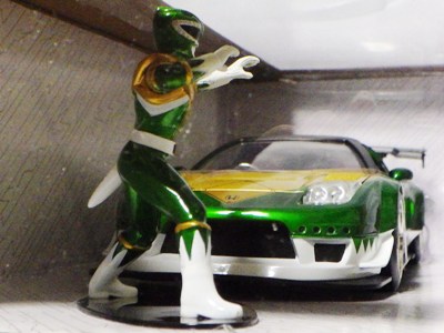 2020年7月11日に受注を開始したものの、1週間もたたないうちに版権の関係で日本での発売が中止になってしまったジャダトイズ1/24「JADA31909ハリウッドライド・ホンダNSX2002グリーン・レンジャーフィギュア付き(パワーレンジャー)」。 2021年1月30日にヤフオクで即決価格設定で出品されて10分ほどしか経っていない同商品を発見し、プレ値ではなく送料も無料だったこともあって迷わず落札。 2020年10月に1度出品されたことがあるのだが、その時はオークション終了時間を忘れていて入札し損ねて非常に凹んだことがあったので救われた。 ところが届いた商品を見てサイズが予想より小さいことに気がついた。 正確な商品名をネットで調べてみたら1/32「JADA31843ハリウッドライド・ホンダNSX2002」という名称であった。 実際のスケールはアンダーパネルを除いたサイズが約13cmなの1/34くらいである。 フィギュアも付属しておらず1/24とはまったく別の商品であった。 amazonをチェックしたら1/24も取り扱っていることが判明し注文。 ちなみに「パワーレンジャー」は日本のスーパー戦隊シリーズをアメリカ人俳優を使って編集し直したアメリカのテレビドラマシリーズ。1993年のジュウレンジャーから、現在のリュウソウジャーまで続いている人気コンテンツ。新規に撮影しているシーンのスーツアクターは日本人が務めているそうだ。 |