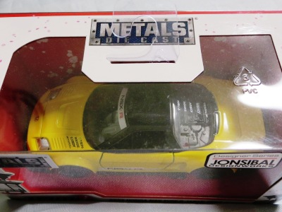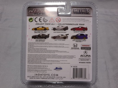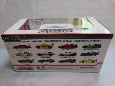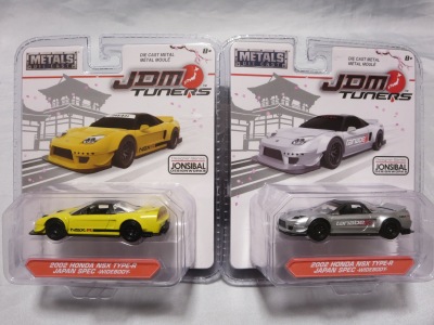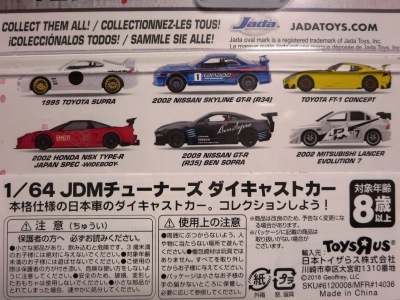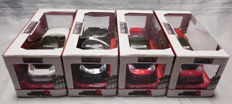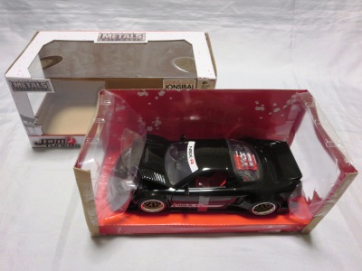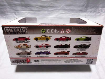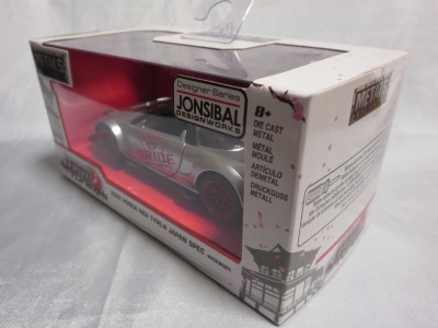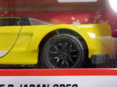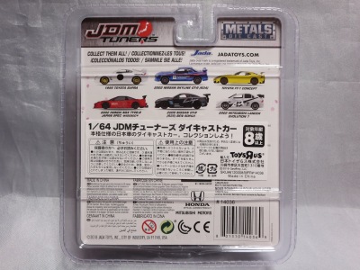 JADA TOYS 2017年7月に、その年の2月のニューヨークトイフェアでモックアップが展示されていたJADA TOYSのJDM TUNERSがe-bayに多数出品されているのを発見(下画像)。イエローとシルバーの2色で価格は日本円にして500円ちょっとでしたが、当時は日本での正規販売はされておらず、2018年3月についにヤフオクで入手。 e-bayでは1/64と表記されていたこの商品のスケールが実際には1/55であることが判明しました(ちなみにJADA TOYSの1/55ではワイルドスピードシリーズが多数発売されています)。
