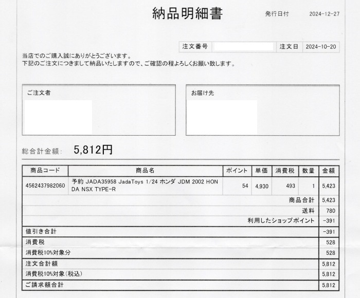 2020年7月10日ショップからJADATOYS1/64の再入荷案内を頂いたが、2019年8月にドンキで入手済みなので注文はせず。ドンキ価格は999円(税別)であったが、鈴鹿サーキット価格の1,400円(税別)が定価であったことがこれで判明。