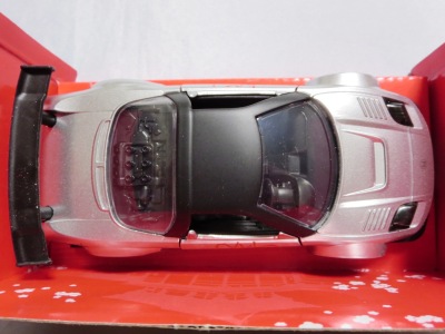 2018年6月23日ヤフオクに初登場したものを購入。 謎だったサイズは1/32であることが判明(実車の全長は4,430mm、ミニカーの全長は約140mmなので 、そのように判断)。 Amazonによるとホワイトも存在するようだ。 1/24とパッケージデザインもミニカーも酷似しているが、よく見ると異なっている。1/32の方はホイールやエンジンの塗装が省略されている。 |
