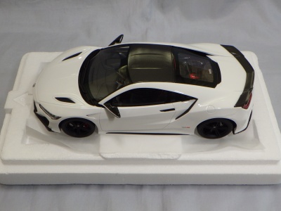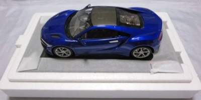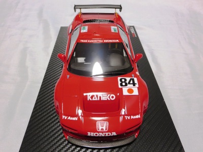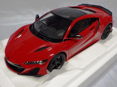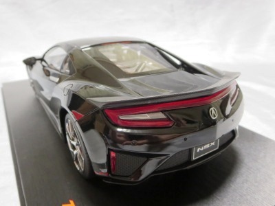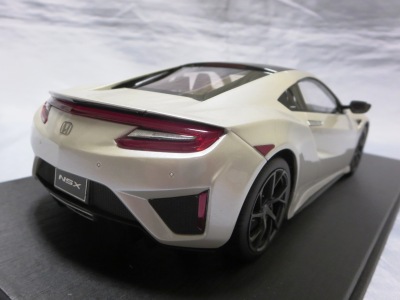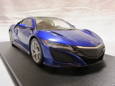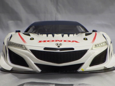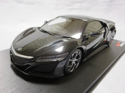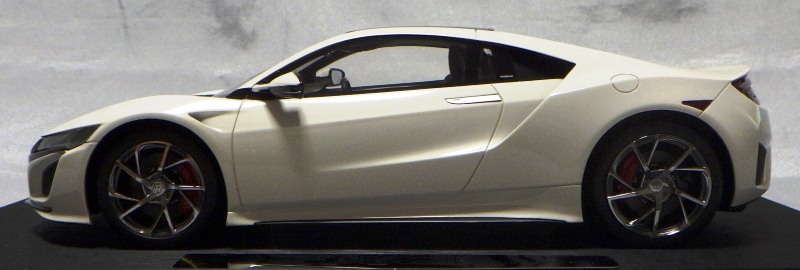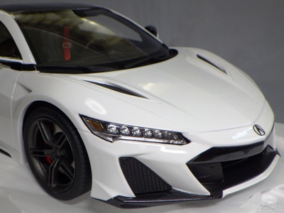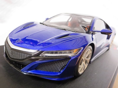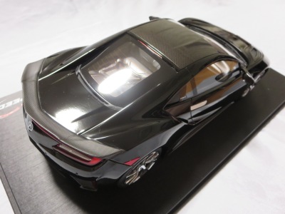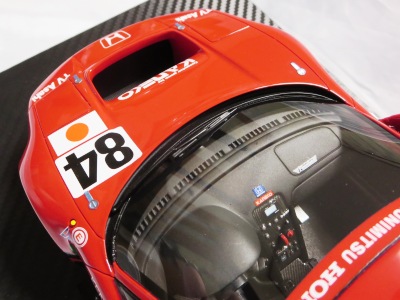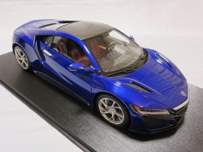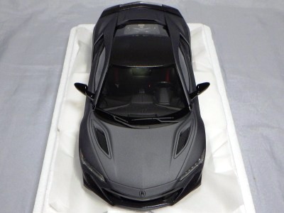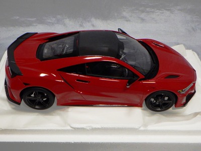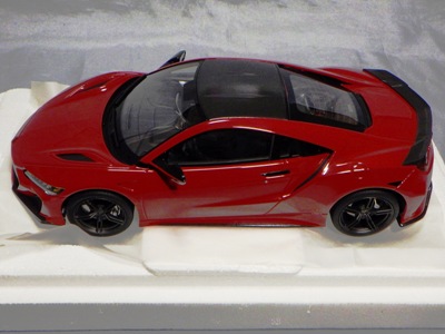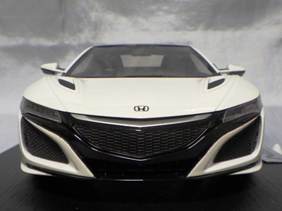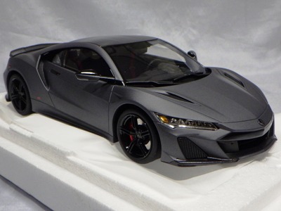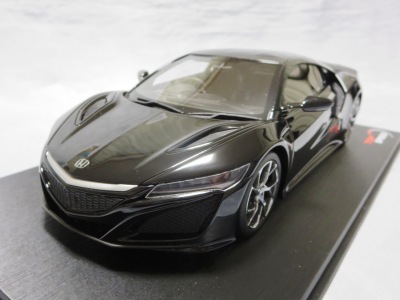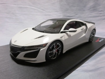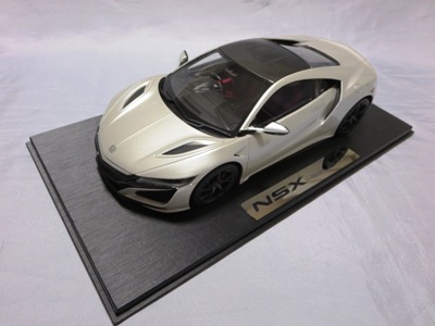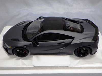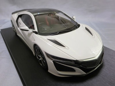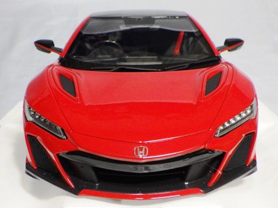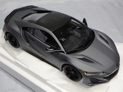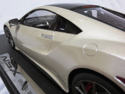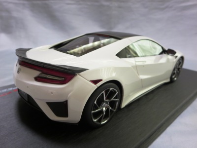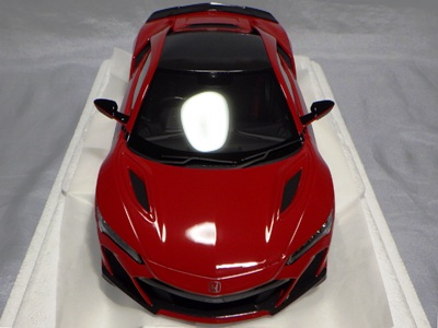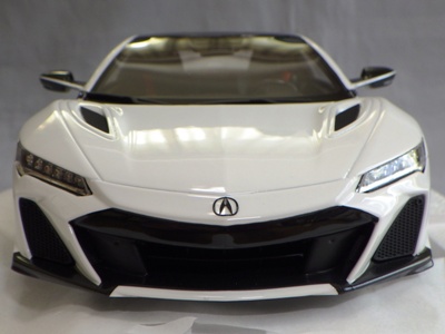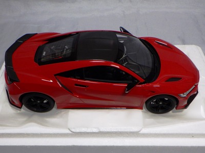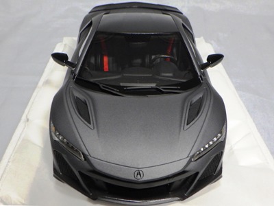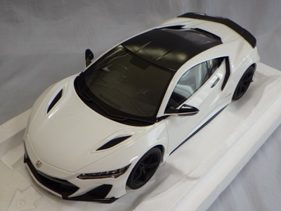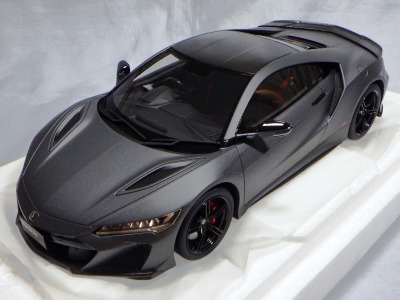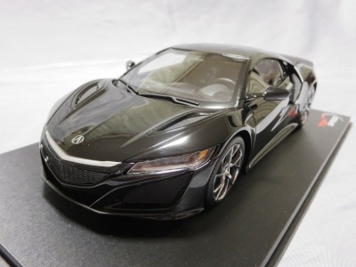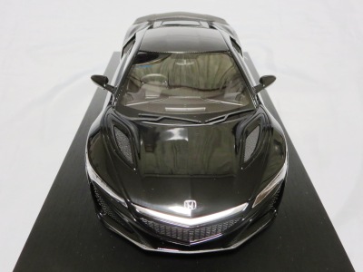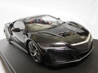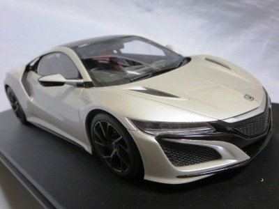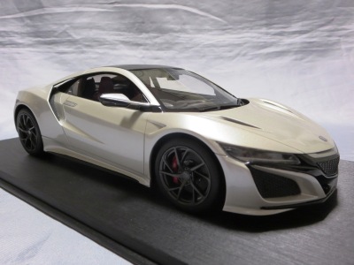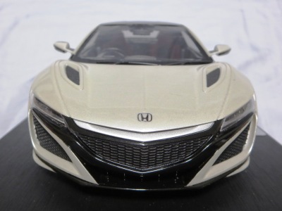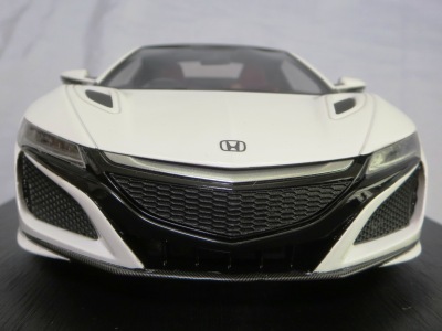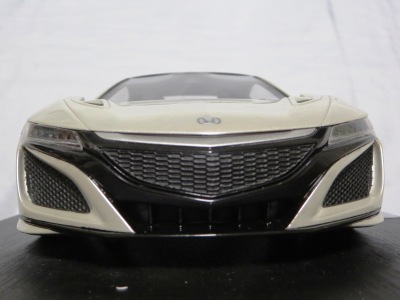 2018年11月29日発売。2016年バージョンがアキュラ仕様であったのに対し、2018年バージョンはホンダ仕様になっているが、なぜか左ハンドルである。フルカーボンのボディは迫力があって実に格好いい。 元々2018年4月発売予定だったものが、1か月単位で発売延期が続き、半年以上経ってやっと発売となった。11月18日にヤフオクに初登場したが、Amazonでの発売日は11月29日となっており、2月に注文してあった商品は11月30日に届いた。 2016年バージョンと異なり、ガラスは濃いスモークではないが、内装が見にくいのは同じ。 アンダーパネルはフラットで、2016年バージョンと異なり、助手席下部にシリアルナンバープレートらしきものが見えるが、車高が低すぎて、薄い鏡を差し入れても番号が確認できない。 |
