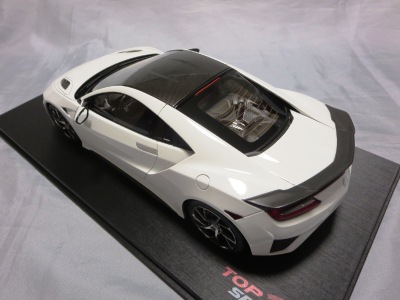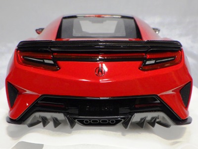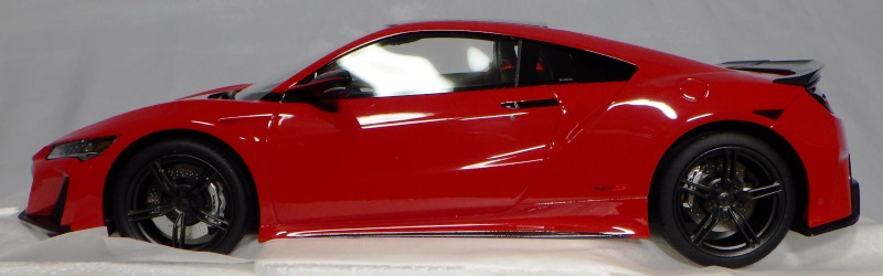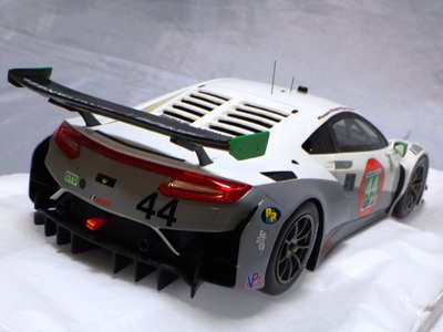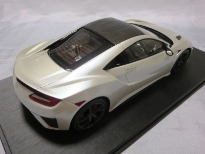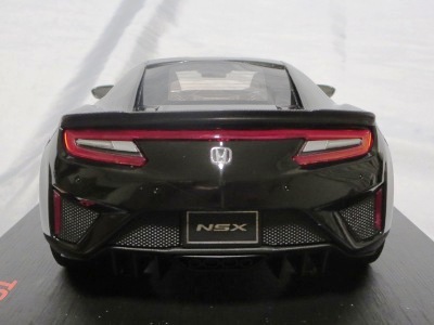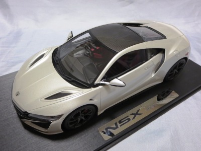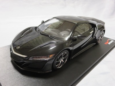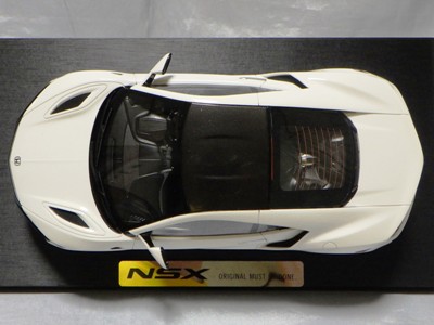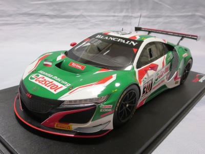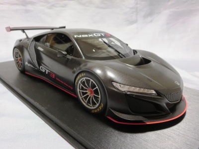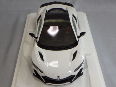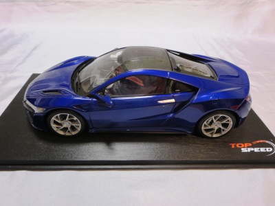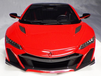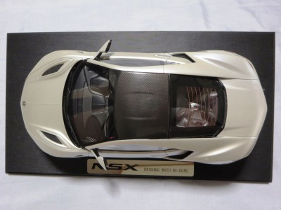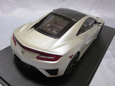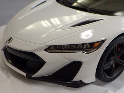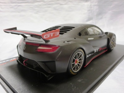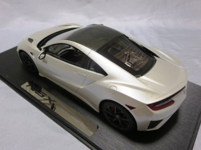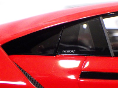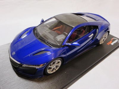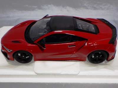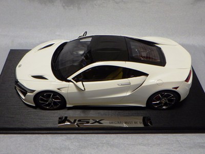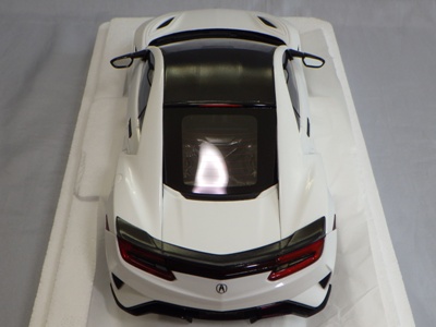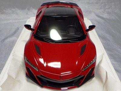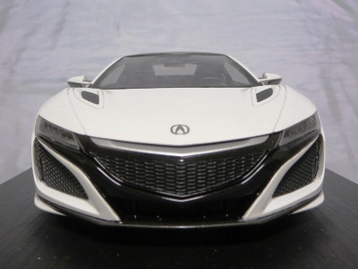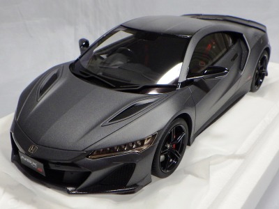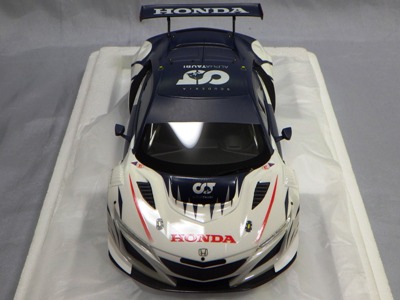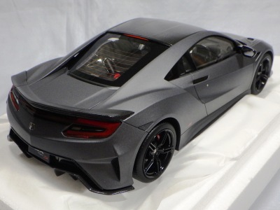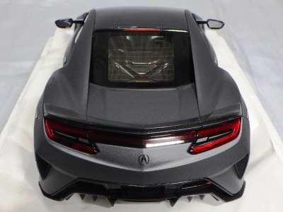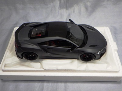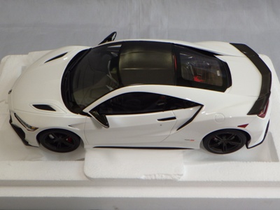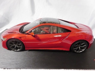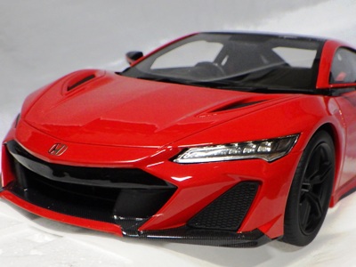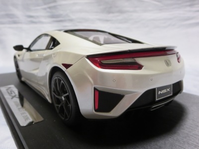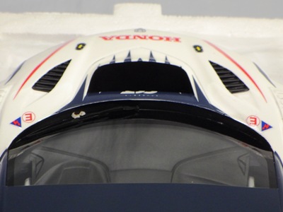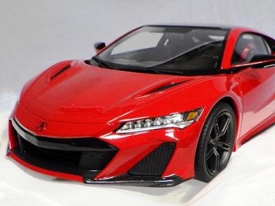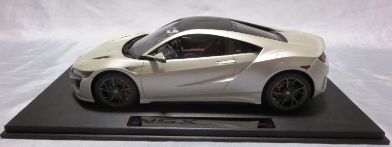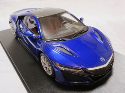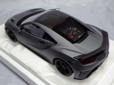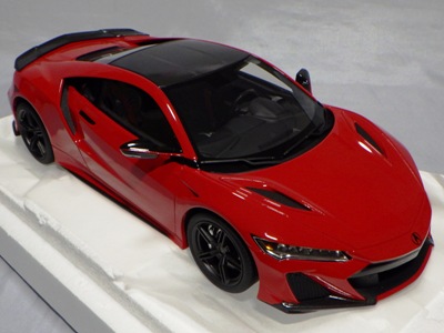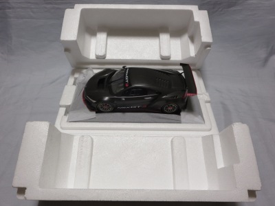2018年11月29日発売。2016年バージョンがアキュラ仕様であったのに対し、2018年バージョンはホンダ仕様になっているが、なぜか左ハンドルである。フルカーボンのボディは迫力があって実に格好いい。 元々2018年4月発売予定だったものが、1か月単位で発売延期が続き、半年以上経ってやっと発売となった。11月18日にヤフオクに初登場したが、Amazonでの発売日は11月29日となっており、2月に注文してあった商品は11月30日に届いた。 2016年バージョンと異なり、ガラスは濃いスモークではないが、内装が見にくいのは同じ。 アンダーパネルはフラットで、2016年バージョンと異なり、助手席下部にシリアルナンバープレートらしきものが見えるが、車高が低すぎて、薄い鏡を差し入れても番号が確認できない。 |