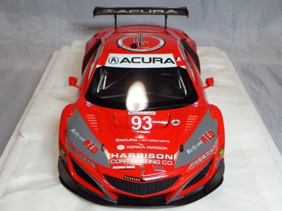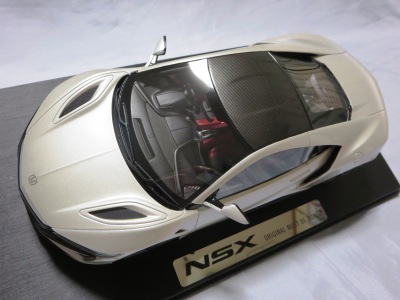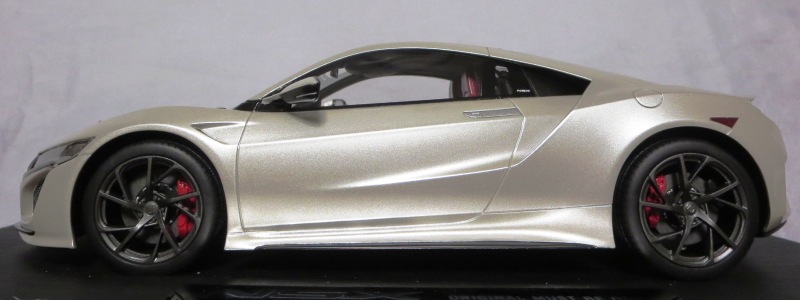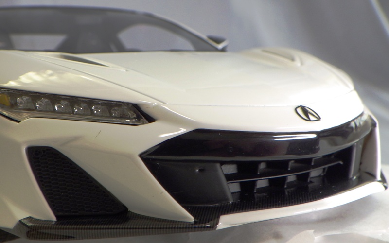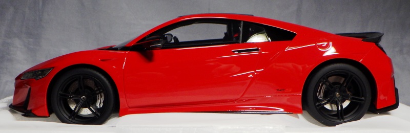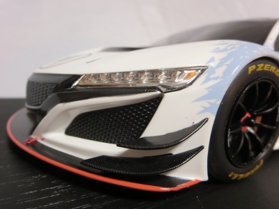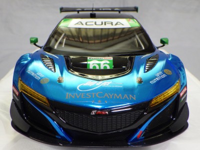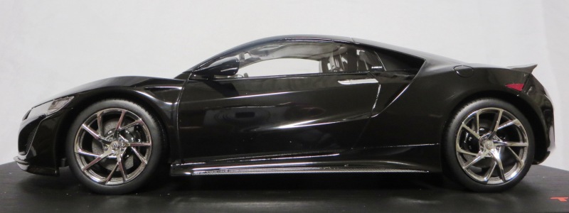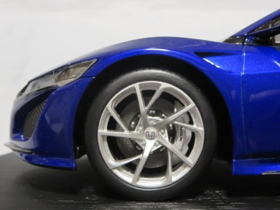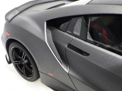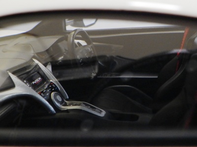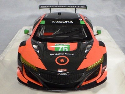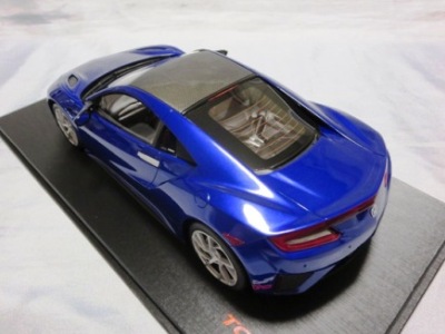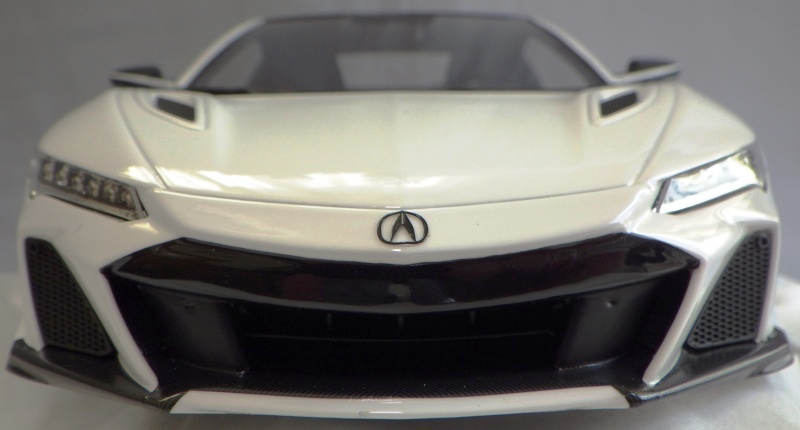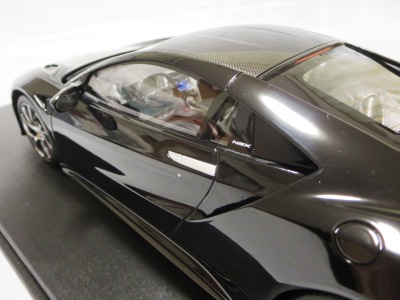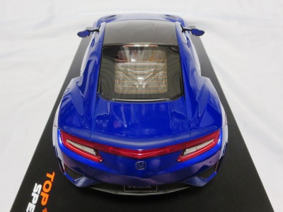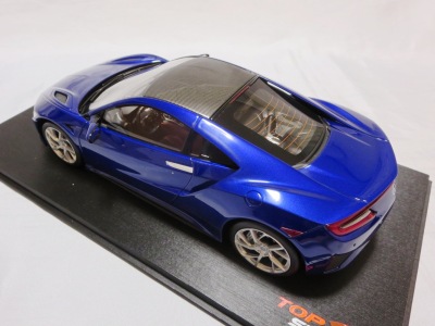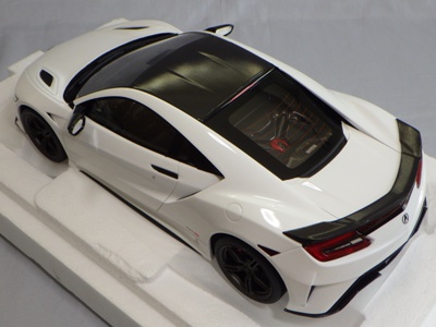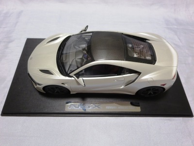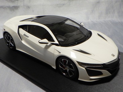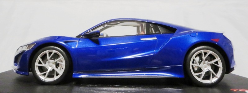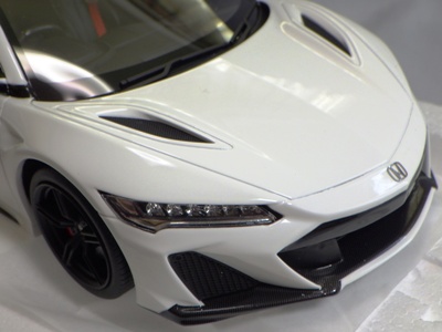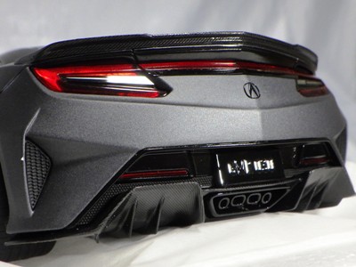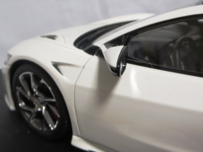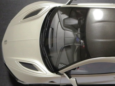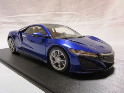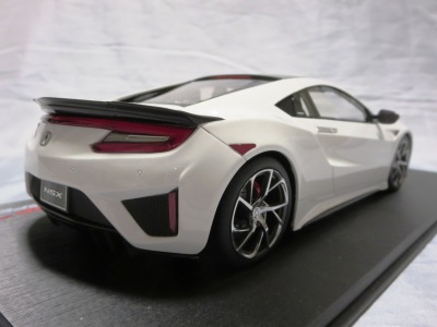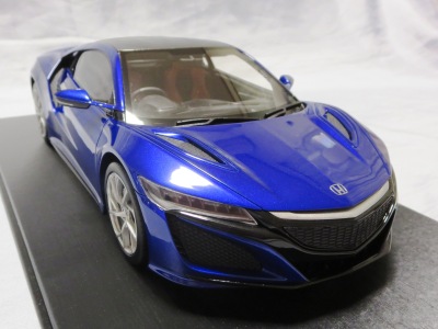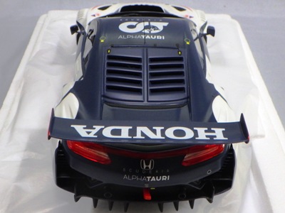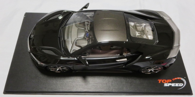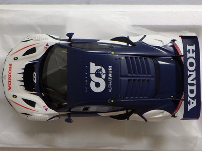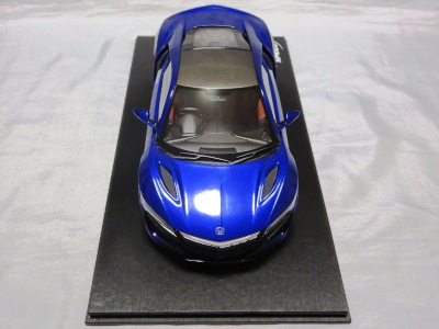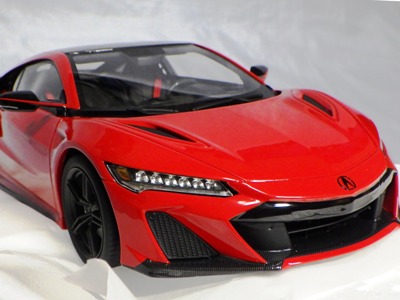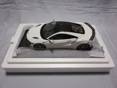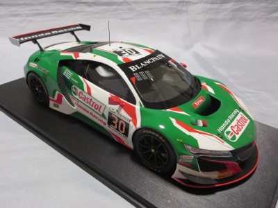 2018年11月29日発売。2016年バージョンがアキュラ仕様であったのに対し、2018年バージョンはホンダ仕様になっているが、なぜか左ハンドルである。フルカーボンのボディは迫力があって実に格好いい。 元々2018年4月発売予定だったものが、1か月単位で発売延期が続き、半年以上経ってやっと発売となった。11月18日にヤフオクに初登場したが、Amazonでの発売日は11月29日となっており、2月に注文してあった商品は11月30日に届いた。 2016年バージョンと異なり、ガラスは濃いスモークではないが、内装が見にくいのは同じ。 アンダーパネルはフラットで、2016年バージョンと異なり、助手席下部にシリアルナンバープレートらしきものが見えるが、車高が低すぎて、薄い鏡を差し入れても番号が確認できない。 |