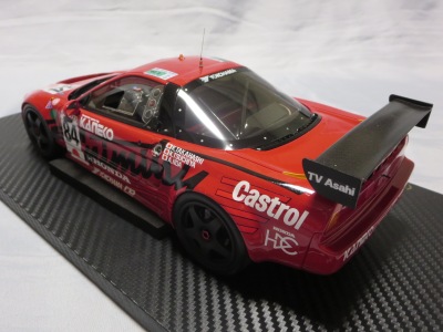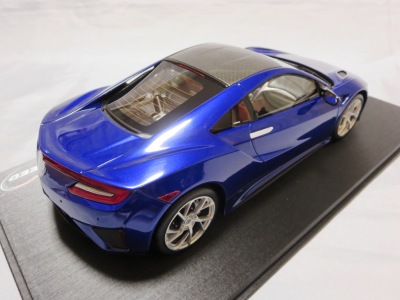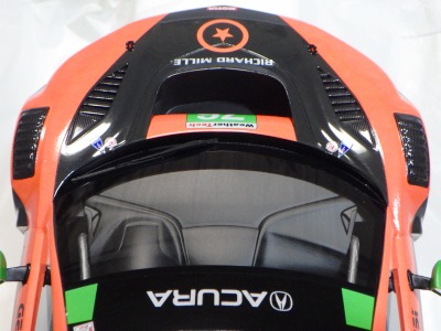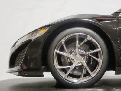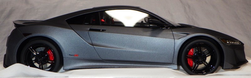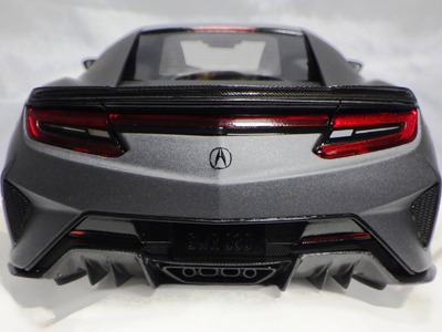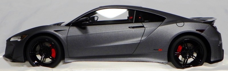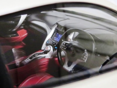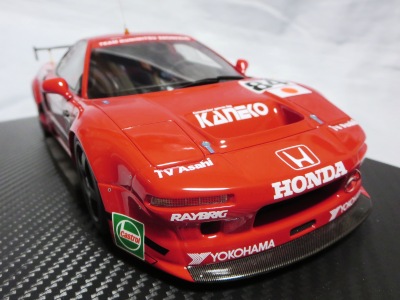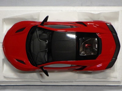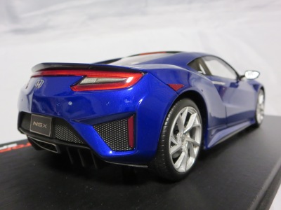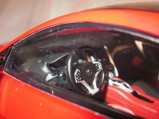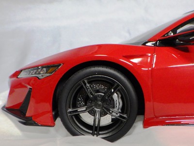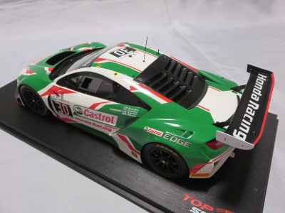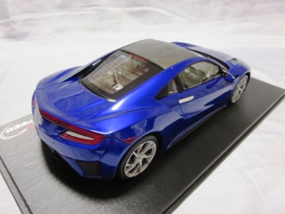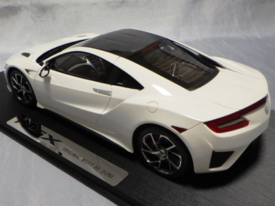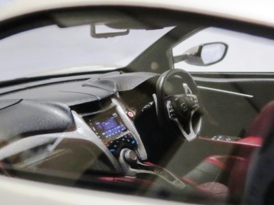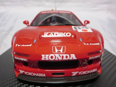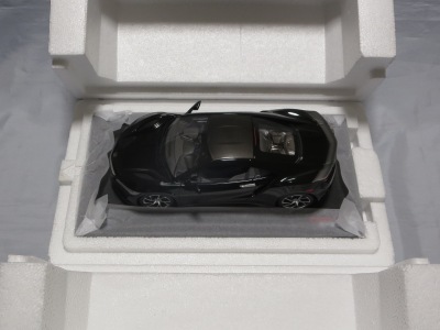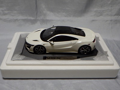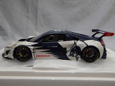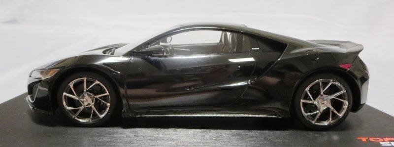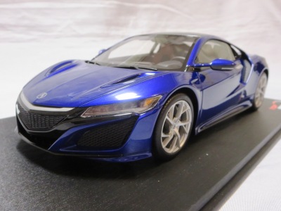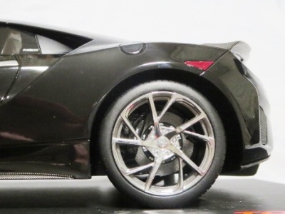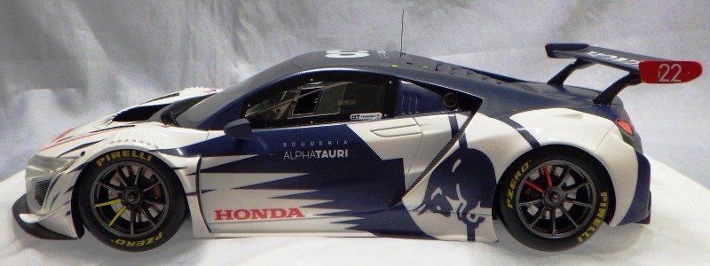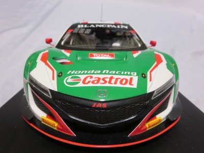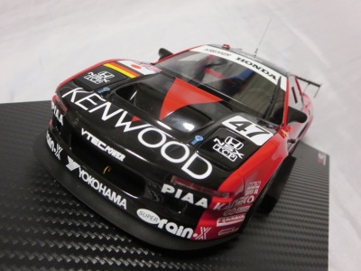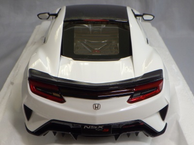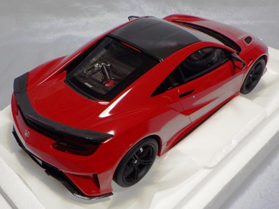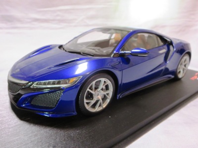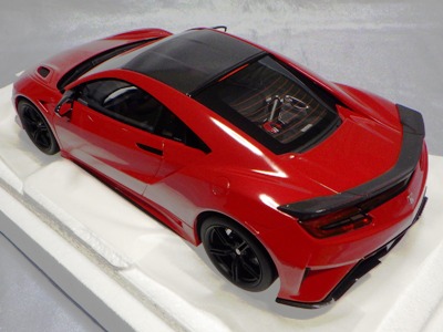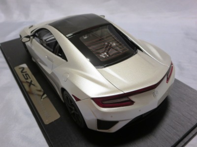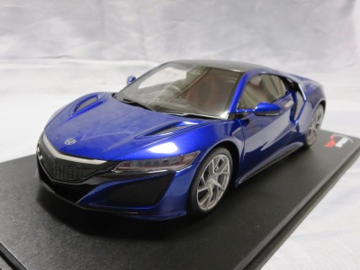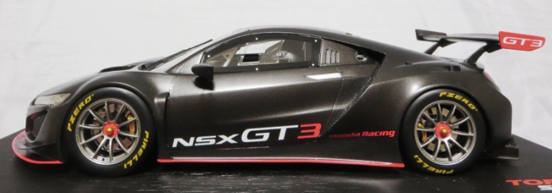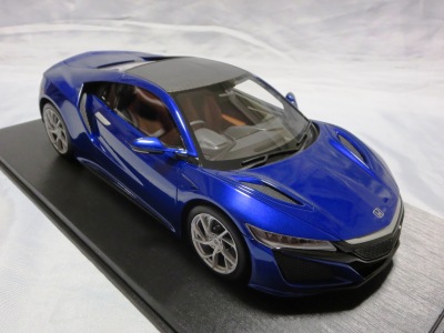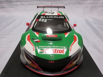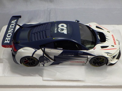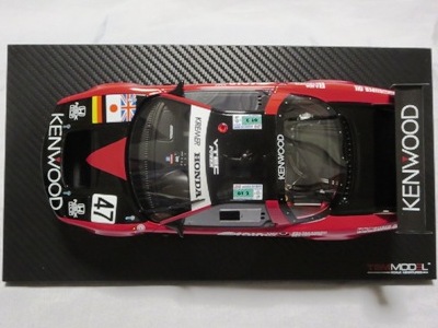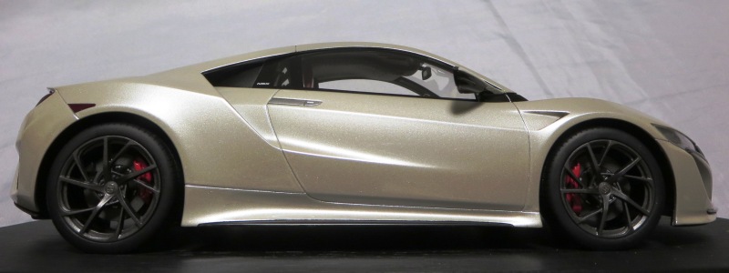 2018年11月29日発売。2016年バージョンがアキュラ仕様であったのに対し、2018年バージョンはホンダ仕様になっているが、なぜか左ハンドルである。フルカーボンのボディは迫力があって実に格好いい。 元々2018年4月発売予定だったものが、1か月単位で発売延期が続き、半年以上経ってやっと発売となった。11月18日にヤフオクに初登場したが、Amazonでの発売日は11月29日となっており、2月に注文してあった商品は11月30日に届いた。 2016年バージョンと異なり、ガラスは濃いスモークではないが、内装が見にくいのは同じ。 アンダーパネルはフラットで、2016年バージョンと異なり、助手席下部にシリアルナンバープレートらしきものが見えるが、車高が低すぎて、薄い鏡を差し入れても番号が確認できない。 |