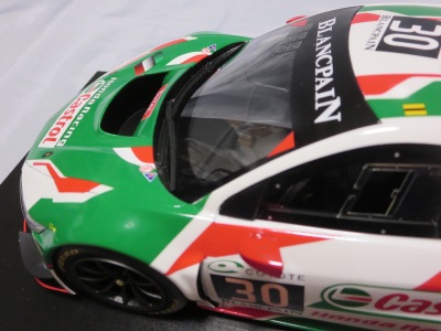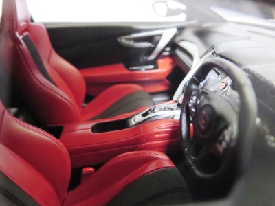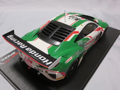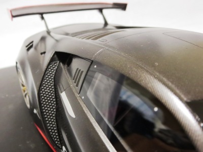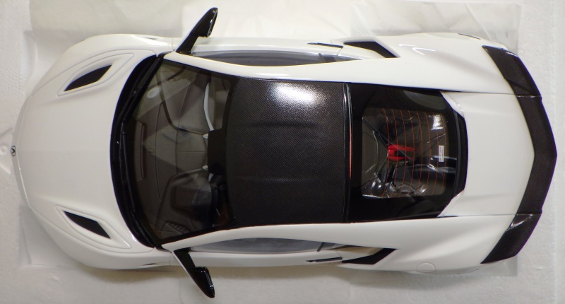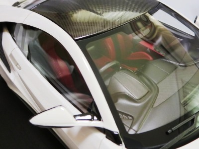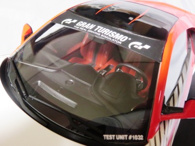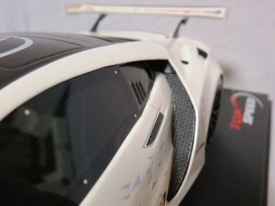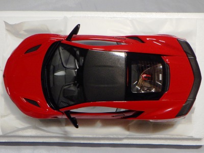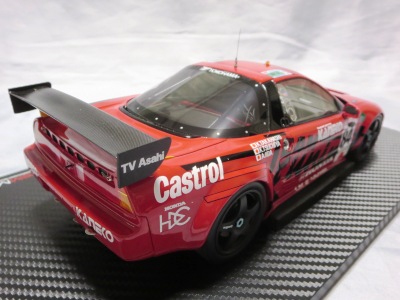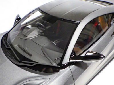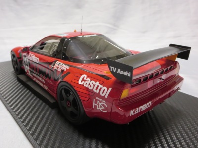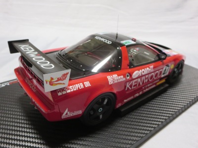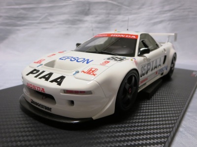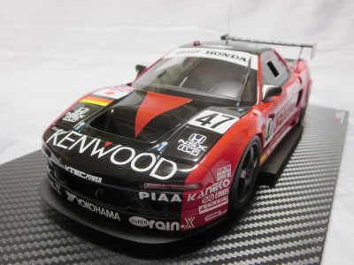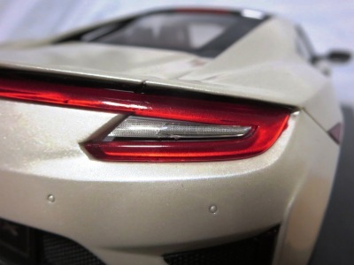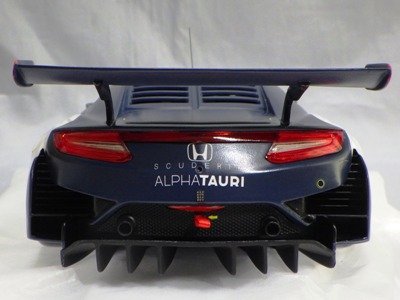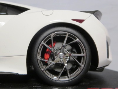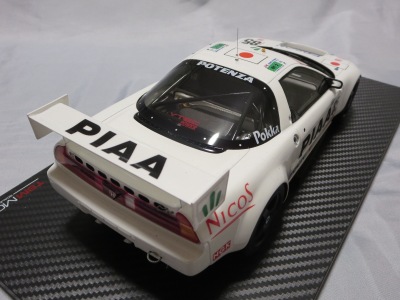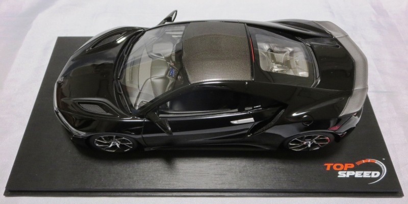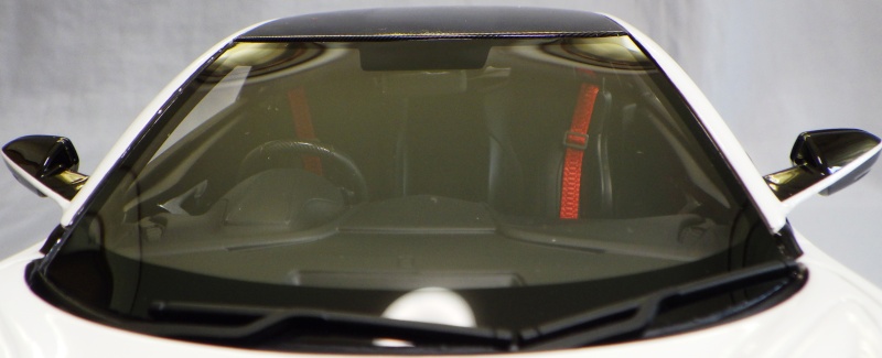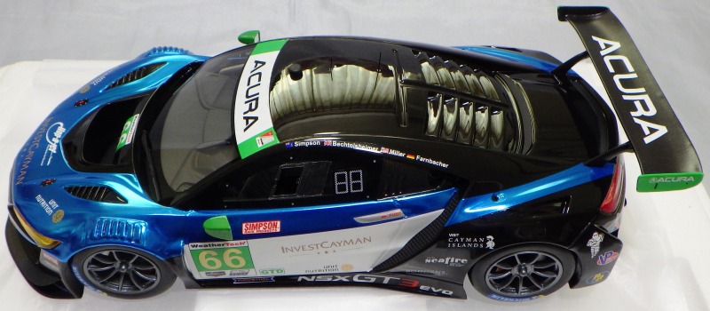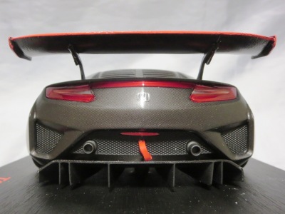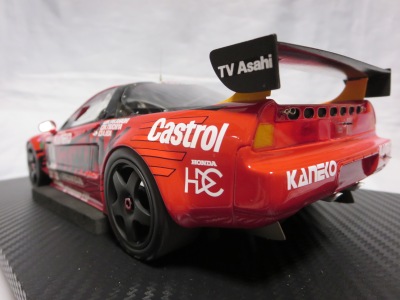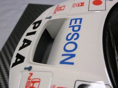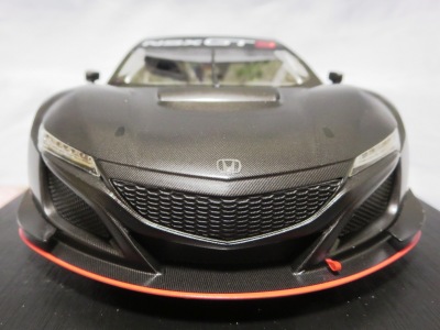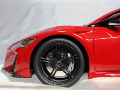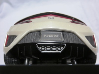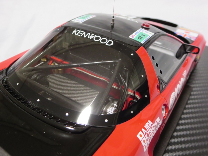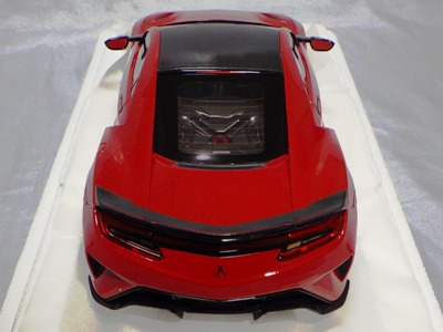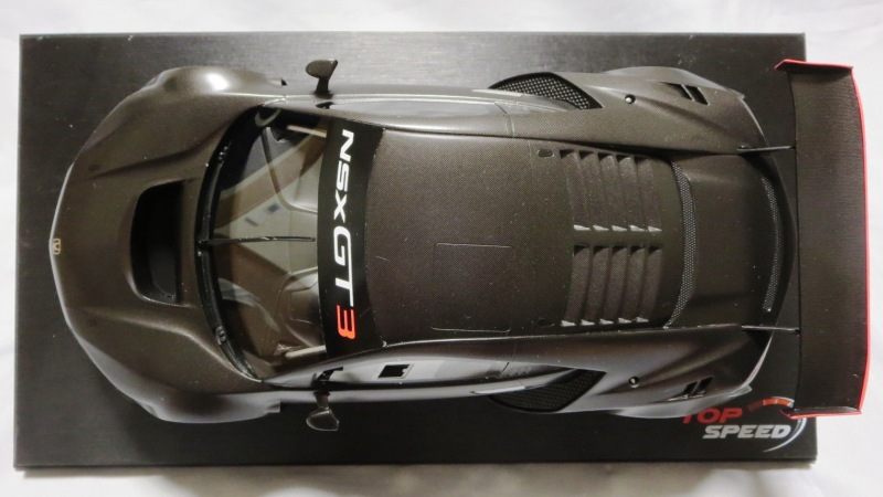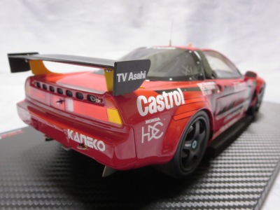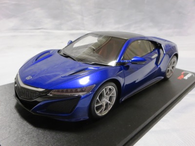 2018年11月29日発売。2016年バージョンがアキュラ仕様であったのに対し、2018年バージョンはホンダ仕様になっているが、なぜか左ハンドルである。フルカーボンのボディは迫力があって実に格好いい。 元々2018年4月発売予定だったものが、1か月単位で発売延期が続き、半年以上経ってやっと発売となった。11月18日にヤフオクに初登場したが、Amazonでの発売日は11月29日となっており、2月に注文してあった商品は11月30日に届いた。 2016年バージョンと異なり、ガラスは濃いスモークではないが、内装が見にくいのは同じ。 アンダーパネルはフラットで、2016年バージョンと異なり、助手席下部にシリアルナンバープレートらしきものが見えるが、車高が低すぎて、薄い鏡を差し入れても番号が確認できない。 |