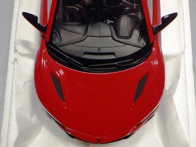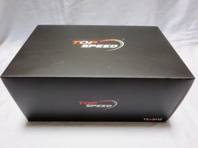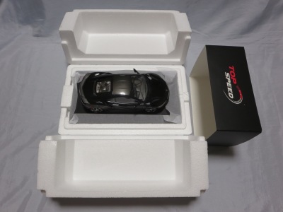 | 2015年12月11日に海外からの出品でヤフオクに初登場したTSMの1/18ブランド「トップスピード」第1弾。999台限定品。日本では12月中旬発売となっており(Amazonでは12月16日取扱開始)、12月16日にミニカーショップ「BoostGear」に注文し、17日に入荷連絡があり、19日に本日午前中に商品が届く。黒い箱の中に発泡スチロールケースで厳重に梱包された状態で木製台座付きのミニカーが収められている。ミニカーは台座に4本のネジで固定されており台座の裏には滑り止め用のフェルトが貼られている。ミニカー本体は1/18というスケールもあり塊感・重厚感がある。ボディのメタリックレッドの塗装面には数カ所に擦れたような跡も見られたが工芸品のような美しさ。ドアやリアハッチは開閉しないが、ガラスごしに作り込まれた内部を見ることができる。また普通は気が付かないが、助手席側のボディ下部にシリアルナンバープレートが貼られており、鏡を台座との間に差し込むと確認することができる。私の購入品は「09X/999」。同時発売の「TS0002ホンダNSX2015ジュネーブ国際自動車ショー」共々、発売即完売というほどではないものの売り切れるのは早かった。ちなみにトップスピード第3弾は「マクラーレン570S」(オレンジ)、第4弾は「フォードGT北米国際オートショー2015」(ブルー)、第5弾は「マクラーレン570S」(ブラック)。 | |