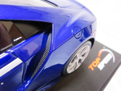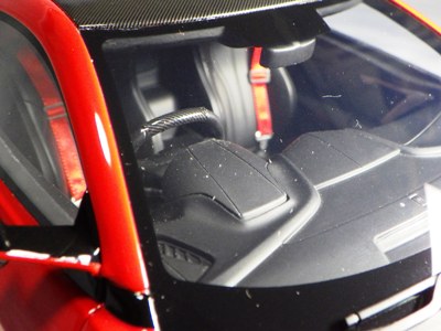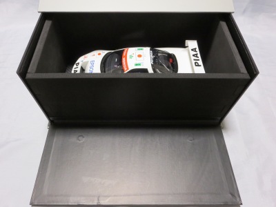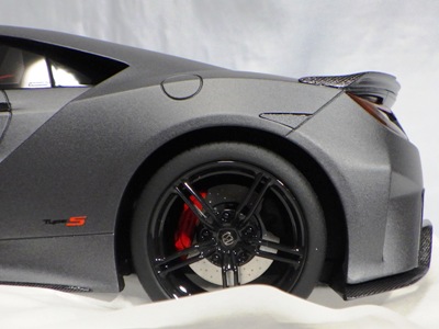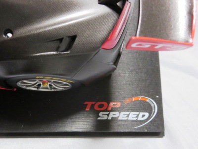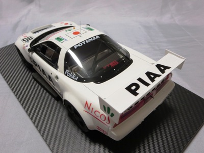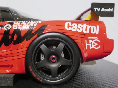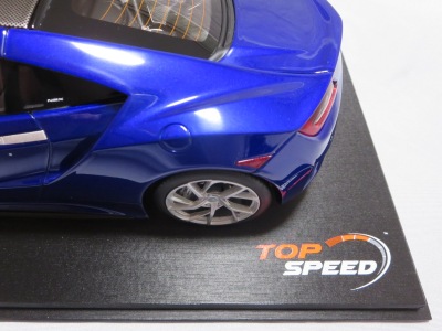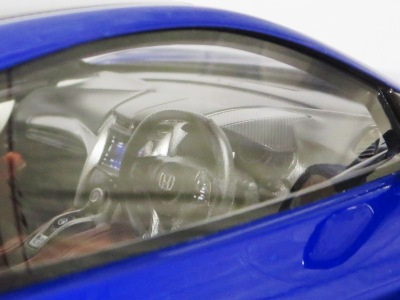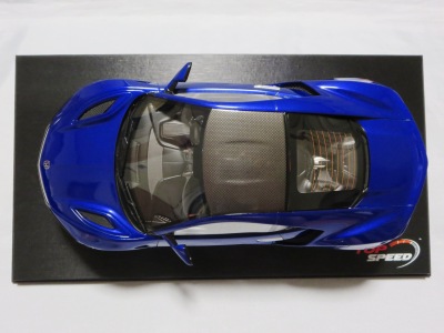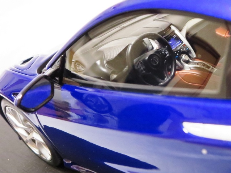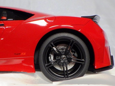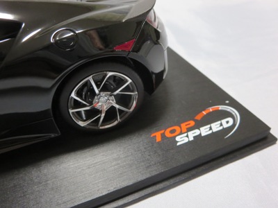 | 2017年8月31日発売。1月18日に同様の商品がホビージャパンから発売されておりクオリティは互角であるが、ホイール、キャリパー、シートカラー等が異なっており、1/18のブルーモデルの購入を考えている人は、そのあたりを判断材料にすればよいだろう。限定品ではないからかパッケージのラベルにそのような表記はなく、TS0001や0002、0012のような助手席側の車体下面のシリアルナンバープレートもない。 | |