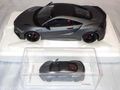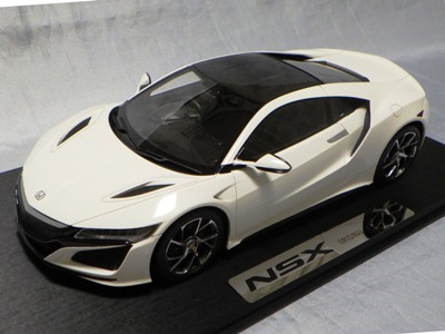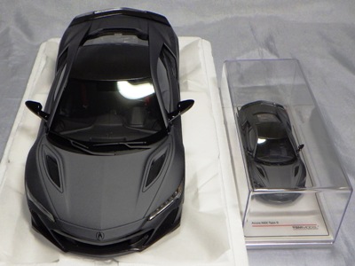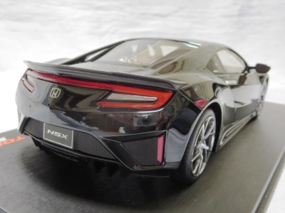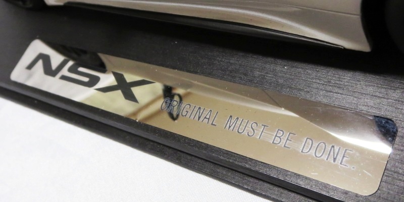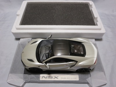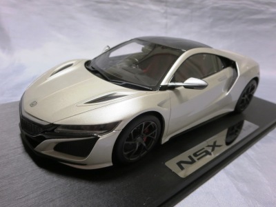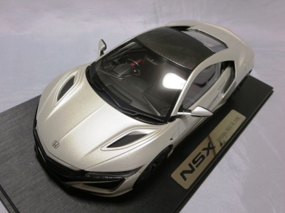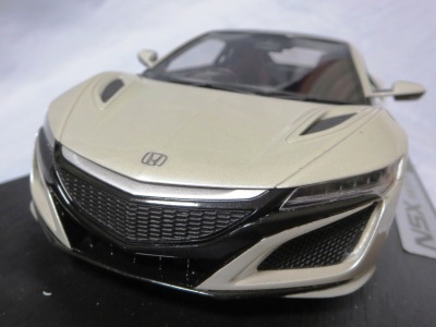 2018年4月入手。 新型NSXの実車は、2016年5月に1号車がラインオフしアメリカでの納車が開始されたが、日本では8月に公式発表されて受注が開始され、納車は2017年3月から開始された。 その時の成約記念品としてホンダが用意したのが、ブルーレイディスク、写真集、TSM製オリジナルミニカーの非売品3点セット。 初代NSXの発売時には、自分の注文した実車と同じ仕様の、プロモデラー・小森康弘氏のハンドメイドによる1/43スケールモデルが47,000円で購入できたのだが、新型NSXでは、実車と同じ仕様のTSM製1/18スケールモデルが無料でプレゼントされた。 入手したモデルのカラーはソースシルバーメタリックで、内装とキャリパーはレッドという、2018月1月27日に京商がsamuraiブランドから発売した1/18モデルとほぼ同じ仕様。 シルバーの新型NSXミニカーは珍しく、この京商の1/18とConceptモデルを除くと、TSMが2017年4月に発売した1/43のホンダNSX2017と京商が2017年7月に発売した1/64ホンダミニカーコレクションの限定バージョンくらいしか他に存在していない。 既に多数のバリエーションを発売しているホビージャパン1/18やエブロ1/48のラインナップにも、2018年4月現在シルバーモデルは1台もない。 |