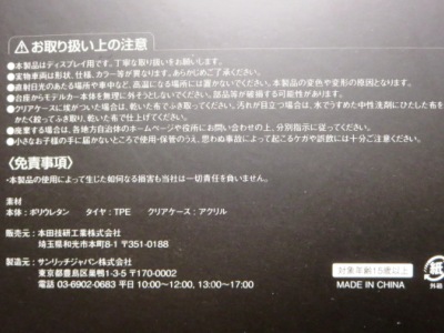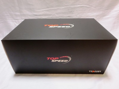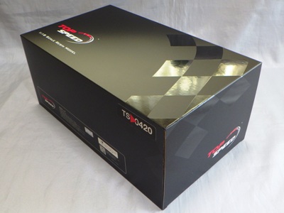 | 2017年11月18日にヤフオクに出品されているのを見つけて発売されていることを知り、Amazonに1台のみ在庫があったものを即注文。Amazonの表示によればホンダバージョンのTS0062と同時に2017年8月31日に発売されたことになっているが真相は不明。TS0062同様に限定品ではないからか車体下面にシリアルナンバーはないがTOPSPEEDロゴがプリントされているのが確認できる。 | |