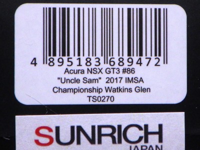 | TS0270 Acura NSX GT3 #86 ”アンクルサム”2017 IMSA チャンピオンシップ ワトキンスグレン/\23,000税別・\25,300税込/サンリッチジャパン | |