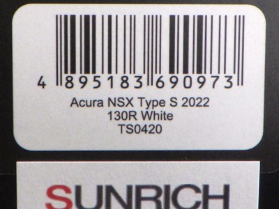 | TS0420 ACURA NSX Type S 130RWHITE/\25,000税別・\27,500税込/サンリッチジャパン | |