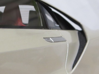 2018年2月16日発売。 元々2017年12月1日発売予定だったものが、2018年1月31日、2月28日と延期され、そこから少し早まって発売となった。 ちなみに1/43の方(TSM430142)は、2017年12月1日に発売になっている。 プレゼンテーション用ということもあって、濃いスモークガラスのため内装はよく見えず(シートやルームミラーは確認できる)、シルエットもシンプルで、全体的にコンセプトカーっぽいのだが、そこが逆に強烈なカタマリ感を出していて迫力があってカッコイイ。 梱包用の発泡スチロールは、ベルリナブラックモデル同様に、開けやすい3分割タイプになっている。 アンダーパネルはフラットで、シリアルナンバープレートはないように見えるが、車高が低すぎてはっきり分からない。 |