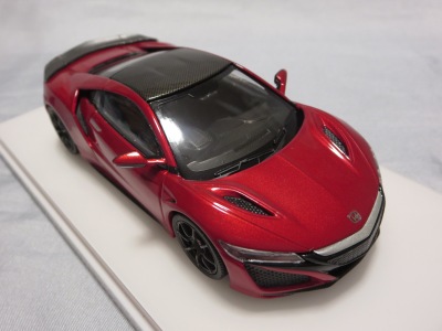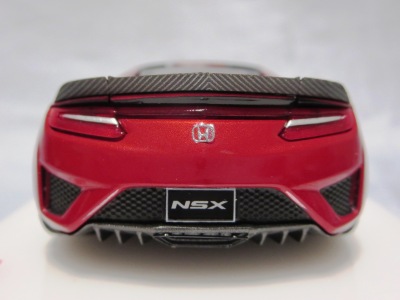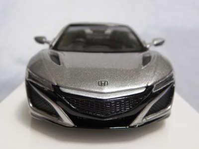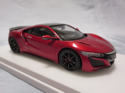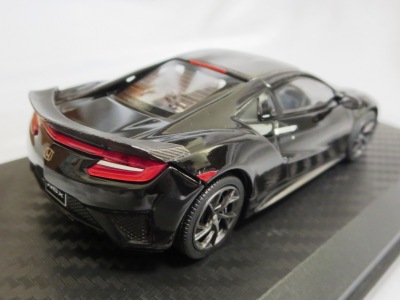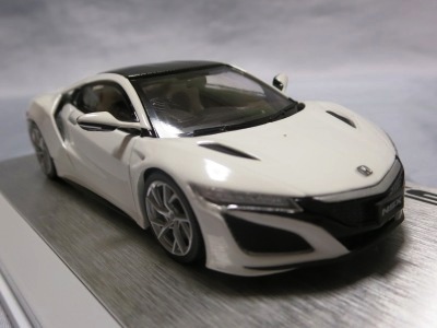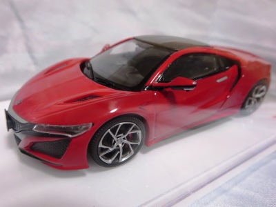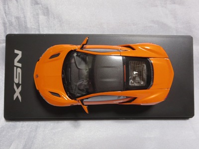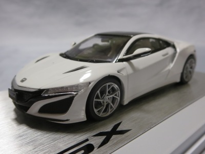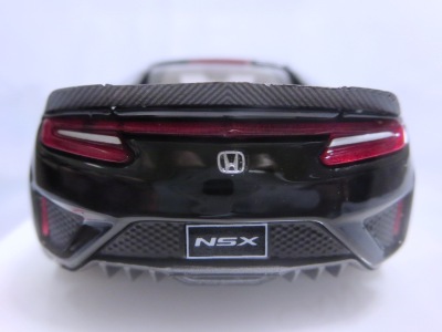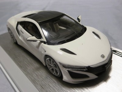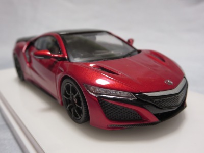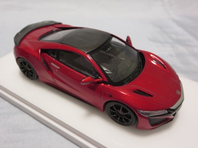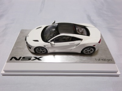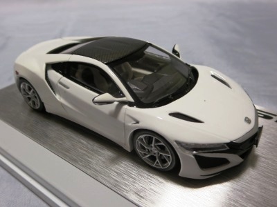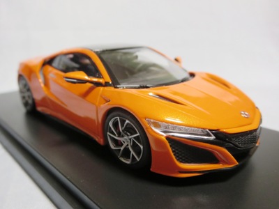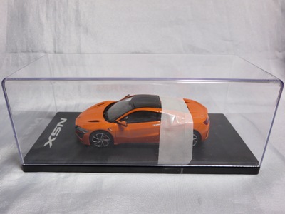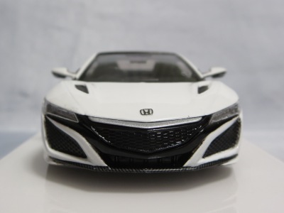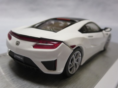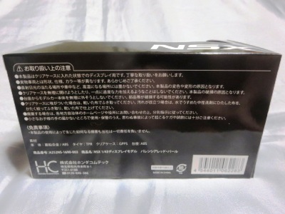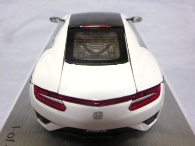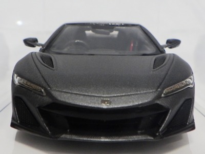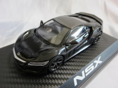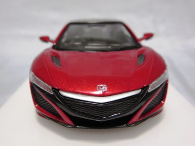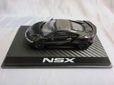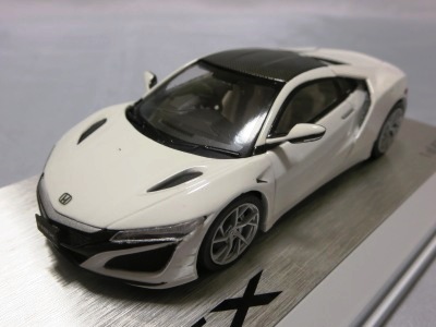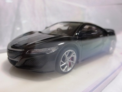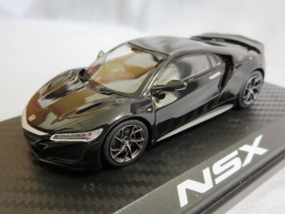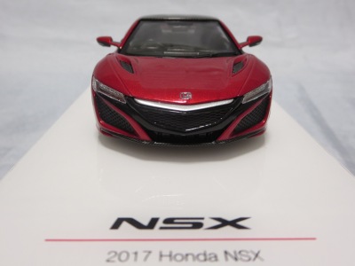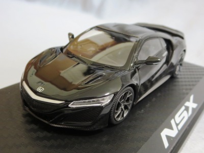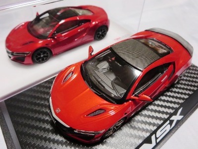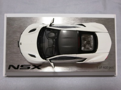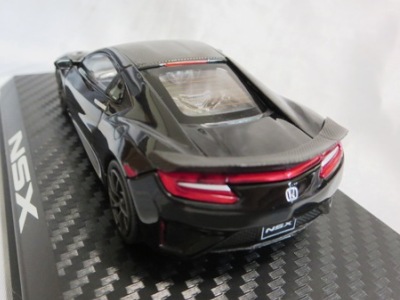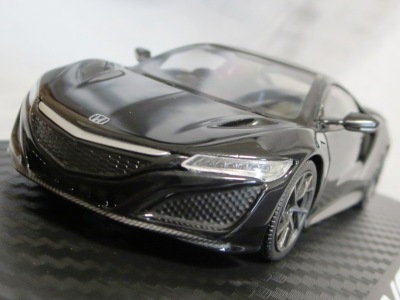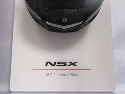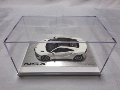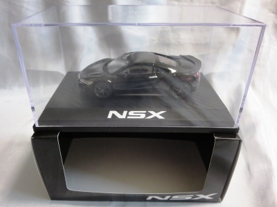 2016年8月25日、新型NSX国内発表に合わせて公式ウェア&グッズオンラインショップにて発売。当日注文(1人1台までの制限あり)して30日に届く。サンリッチ社TSM-MODELが、2015年8月23日に発売した「ジュネーブ国際モーターショー2015」をベースとしているが、市販バージョンへ変更するにあたって大幅に改良されている。 具体的には、モデル化が初となるカーボンのオプションパッケージ仕様となっており、ルーフ、リアスポーラー、その他各所がカーボン仕様になっている。ジュネーブ国際モーターショーモデルはアキュラではなくホンダ仕様だったとはいえ左ハンドルだったため、ダッシュボードは完全新規となっている。ステアリングの位置のみならずダッシュボードのデザインも若干変更されている。ボンネットのダクトは小型化され、ホイールやノーズのシルバーのパーツ形状、ドアミラーの支柱のカラーも変更されている。またナンバープレート(マスコットプレート)、ハイマウントストップランプ、ドアのキーホールが追加されている。 ■サイズ:本体=約103(車長)×53(車幅)×29(車高)mm (ドアミラー含む) :ケース=約160(縦)×88(幅)×80(高さ)mm(台座含む) ■素材:ボディ=亜鉛合金/ABS、タイヤ=TPR ■パッケージ:Hondaオリジナルパッケージ入り ■対象年令:15歳以上 ■中国製 |