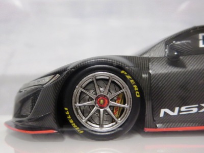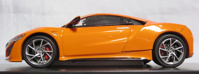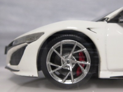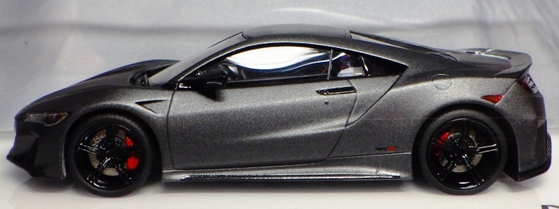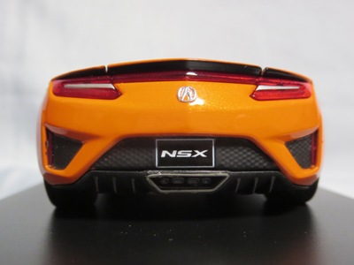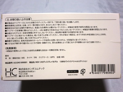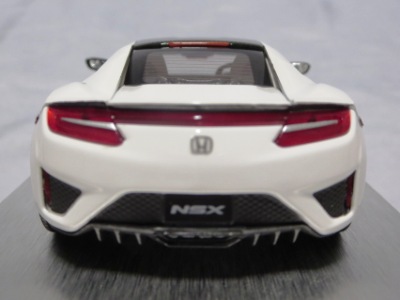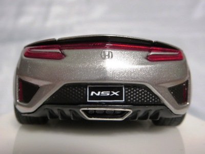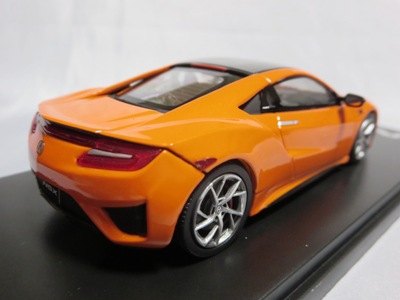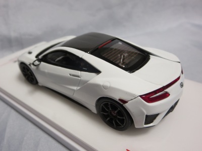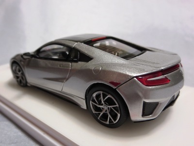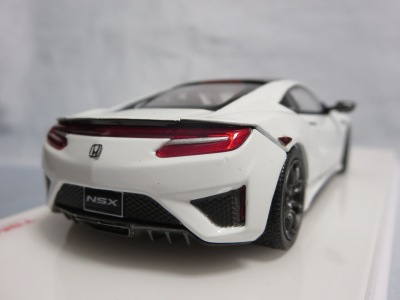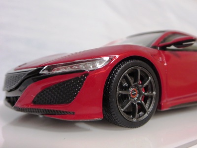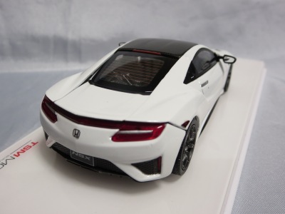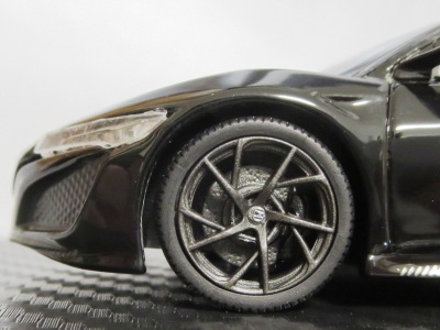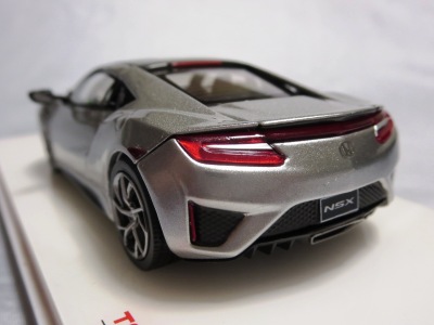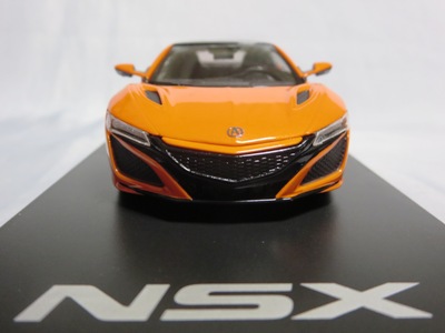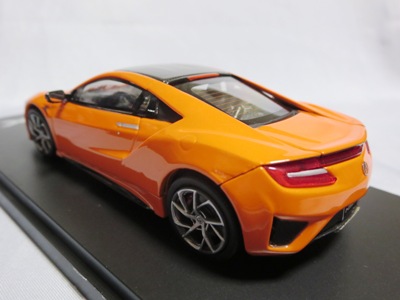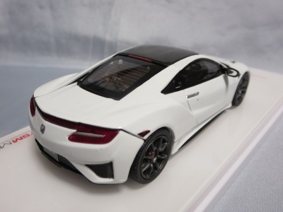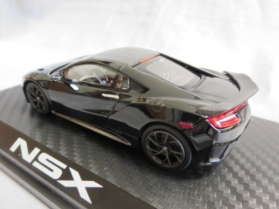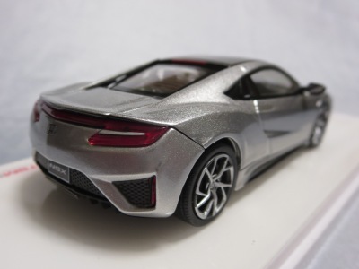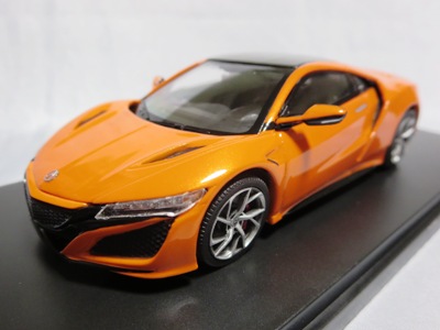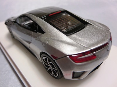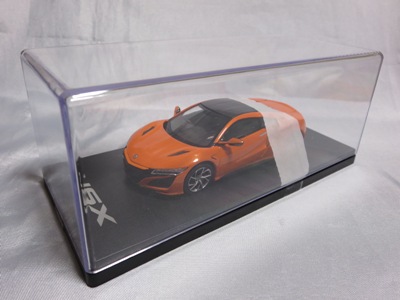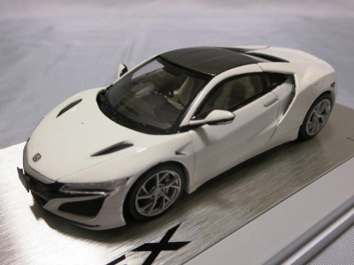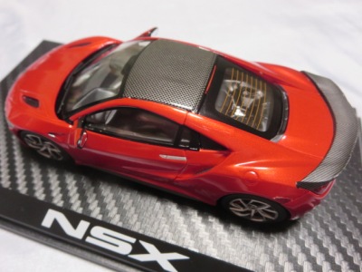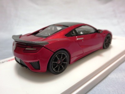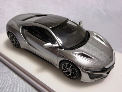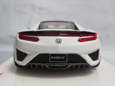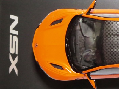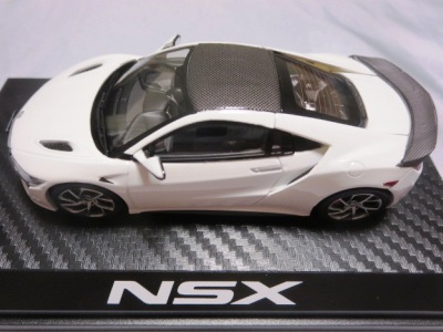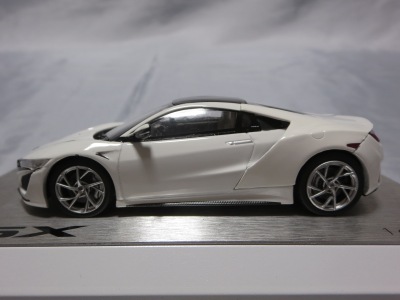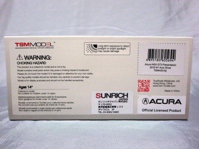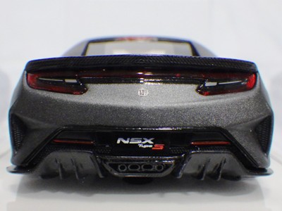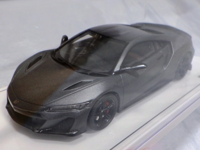 2016年8月25日、新型NSX国内発表に合わせて公式ウェア&グッズオンラインショップにて発売。当日注文(1人1台までの制限あり)して30日に届く。サンリッチ社TSM-MODELが、2015年8月23日に発売した「ジュネーブ国際モーターショー2015」をベースとしているが、市販バージョンへ変更するにあたって大幅に改良されている。 具体的には、モデル化が初となるカーボンのオプションパッケージ仕様となっており、ルーフ、リアスポーラー、その他各所がカーボン仕様になっている。ジュネーブ国際モーターショーモデルはアキュラではなくホンダ仕様だったとはいえ左ハンドルだったため、ダッシュボードは完全新規となっている。ステアリングの位置のみならずダッシュボードのデザインも若干変更されている。ボンネットのダクトは小型化され、ホイールやノーズのシルバーのパーツ形状、ドアミラーの支柱のカラーも変更されている。またナンバープレート(マスコットプレート)、ハイマウントストップランプ、ドアのキーホールが追加されている。 ■サイズ:本体=約103(車長)×53(車幅)×29(車高)mm (ドアミラー含む) :ケース=約160(縦)×88(幅)×80(高さ)mm(台座含む) ■素材:ボディ=亜鉛合金/ABS、タイヤ=TPR ■パッケージ:Hondaオリジナルパッケージ入り ■対象年令:15歳以上 ■中国製 |
