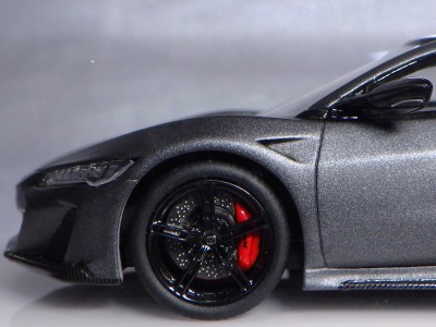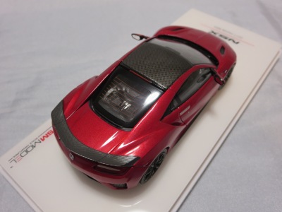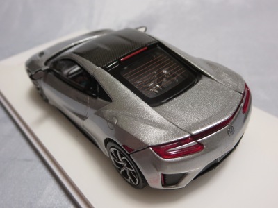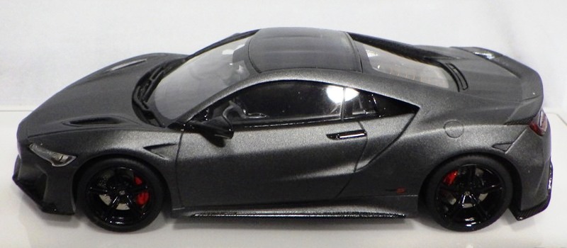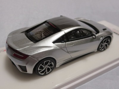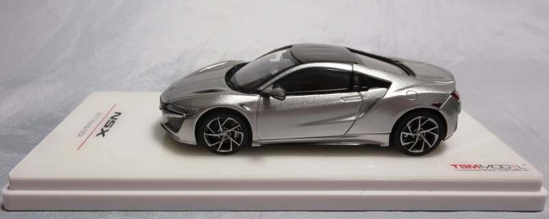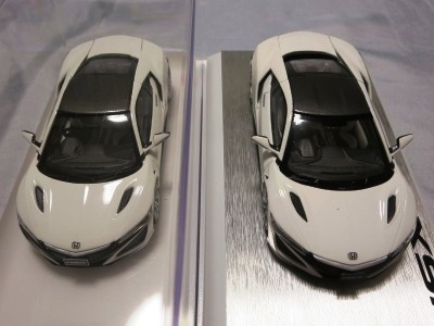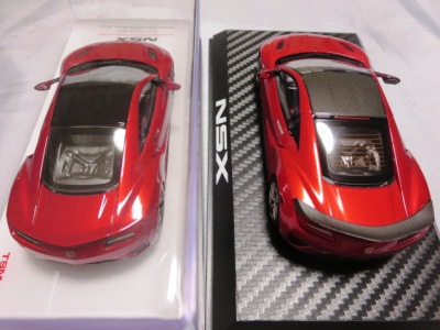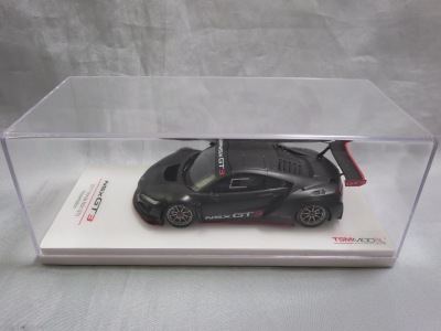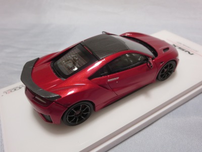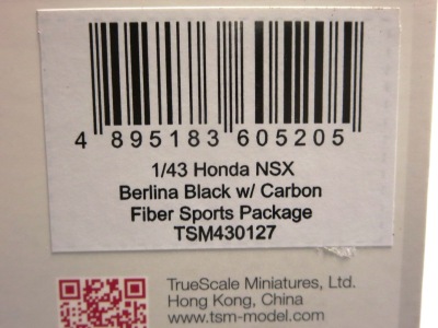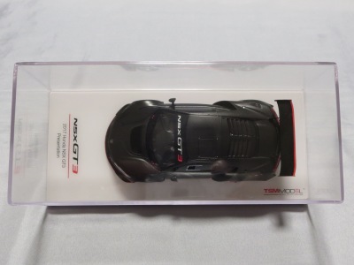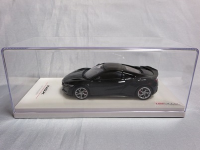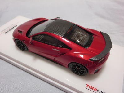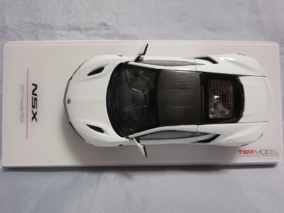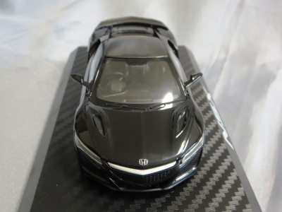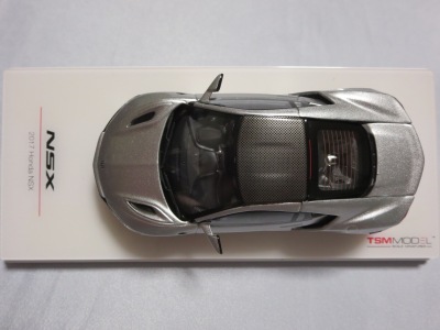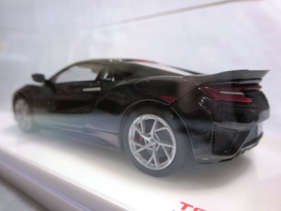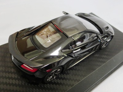 2016年10月5日に発売された3色に続き、2017年4月30日にTSMから追加で発売されたのが、このベルリナブラック/カーボンファイバーパッケージと、ソースシルバーメタリックの2種。 TSMの1/43ベルリナブラックモデルは、2016年2月3日に宮沢模型流通限定で発売されているが、これは2015年のイベント用のモデルで、しかもアキュラ仕様なので全くの別物。 2017年2月27日にホンダコムテック限定で発売された商品とほぼ一緒である。違いは、ブラックだったホイールとキャリパーが、それぞれシルバーとレッドに変更されている点。内装は共にブラックで、いずれも地味なモデルであるが、TSM版は、このホイールとキャリパーのカラー変更でいくぶんマシになっている。 発売当初、この商品の存在に気がつかず2018年12月に購入。 |