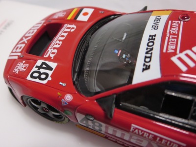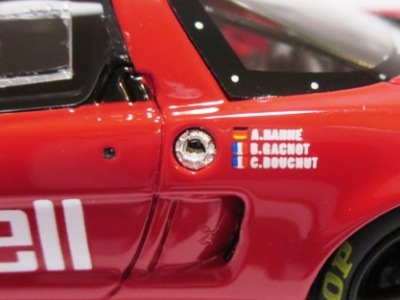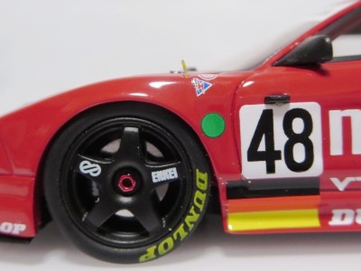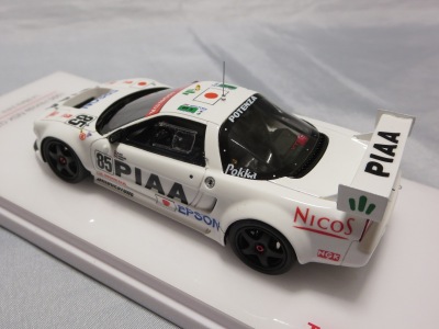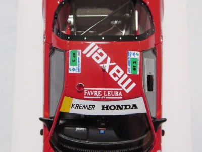 2017年3月発売予定であったが、2017年6月29日にやっと発売。このマシンがモデル化されたのは、2006年2月15日に京商から初の1/43モデルとして発売されもの以来、わずか2度目。エブロですら1995年以降のマシンしかモデル化しておらず稀少(HPIのMIRAGEも同様)。あとはフランスのメーカーのスターターとプロバンスがガレージキットとしてリリースしているくらい。クラス7位総合16位完走を果たしたフィリップ/岡田/清水組のマシン。 |