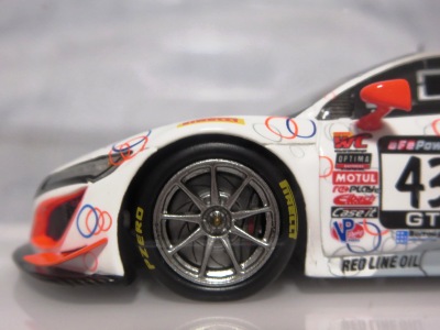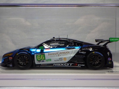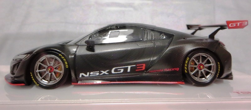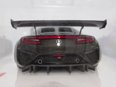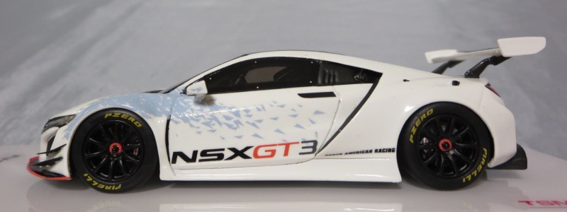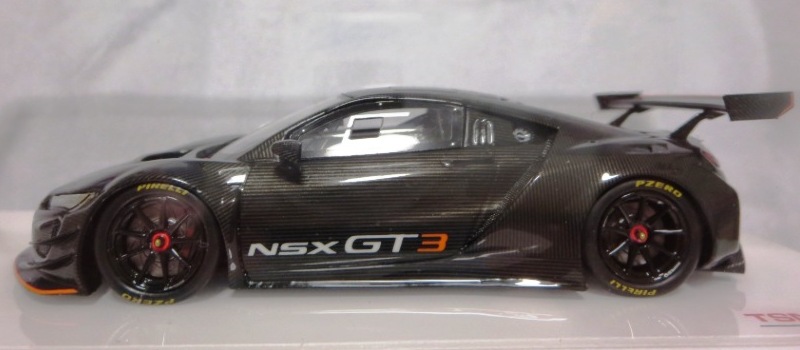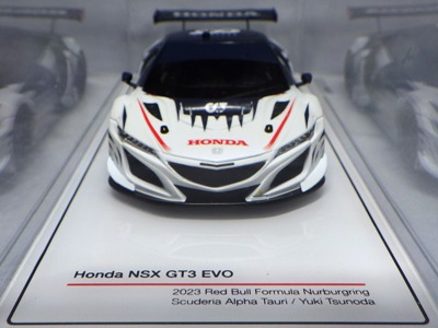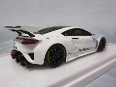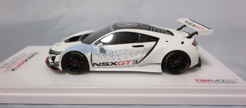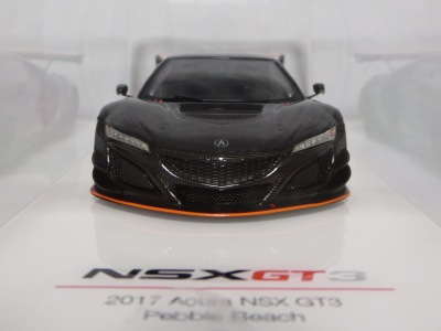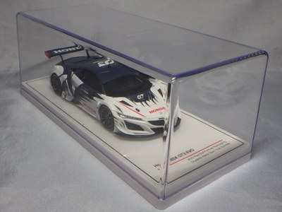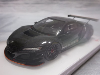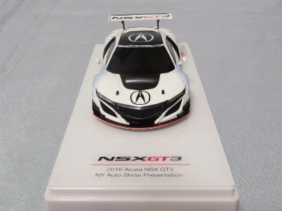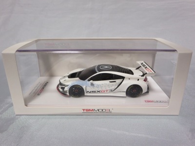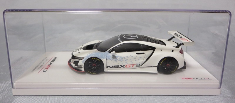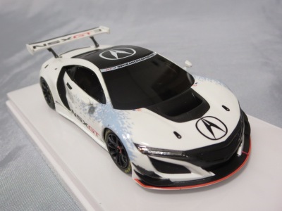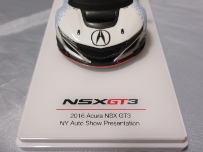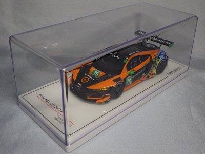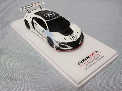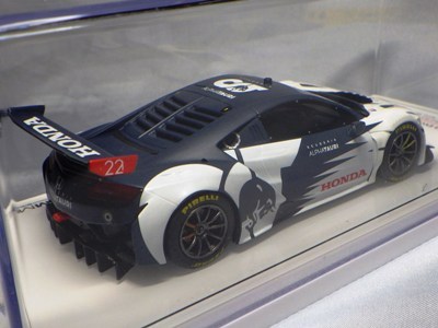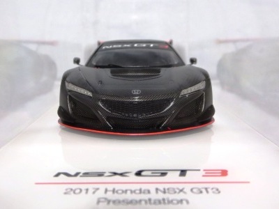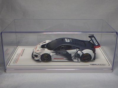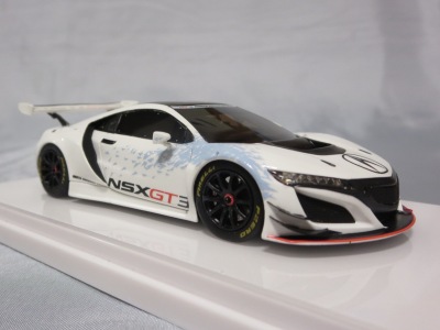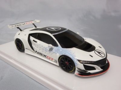 2017年12月1日発売。アメリカン・ホンダ・モーターは2016年3月23日にニューヨーク国際自動車ショーでアキュラNSX GT3を初公開。この商品はその時のマシンをモデル化したもの。 FIA-GT3規定に参入する日本車としては、日産GT-R NISMO GT3(GT3-030)、レクサスRC F GT3(GT3-046)に続いて3車種目(GT3-047)。2017年に4台のアキュラNSX GT3がレースに参戦し2つのレースで勝利、その後ホンダNSX GT3もデビュー。 そしてホンダとアキュラは2017年7月27日、2018年シーズンに向けて、翌28日からNSX GT3をプライベート・チームに販売すると発表。シャシーは量産モデルのNSXと一緒に米国オハイオ州の工場で造られ、最終的な組み立てはイタリアのJ.A.S. Mortorsportが行う。販売や技術サポート、パーツ供給は、北米ではホンダ・パフォーマンス・ディベロップメント(HPD)、日本では無限(M-TEC)、そして欧州ではJ.A.S. Mortorsportが行う。J.A.S. Mortorsport引渡し価格は46万5,000ユーロ(約6,050万円)。 1/18モデルは2018年2月16日に発売。 |
