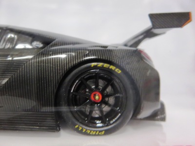| 2017年2月27日、公式ウェア&グッズオンラインショップにて受注開始。当日注文して3月2日に届く。前年の8月に発売されたレッド&ホワイトモデルと基本的には共通のカーボンオプションパッケージ仕様であるが、その両モデルではシルバーだったホイールまで黒1色となっている。箱も、箱の内面も、車体も、ベースも、全てが真っ黒のため、モデルが箱に入ったままでは映り込みがひどいこともあって、まともな写真が撮れない。内面色を変えるとか、キャリパーくらいはアクセントになるカラーにするとかすれば良かったのでは。2017年7月4日11:30バレンシアレッドパールと共に再入荷。 | |