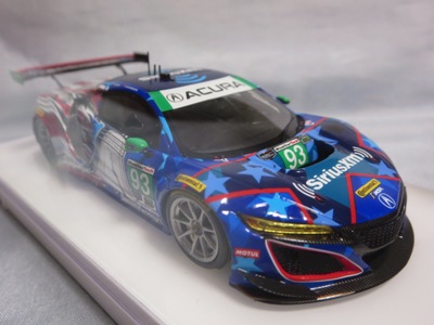2019年4月4日に受注が開始され、2019年10月11日に発売された。 この2017年仕様の93号車は、9月に1/18が、10月にこの1/43が、そして11月には1/64が発売されてい る。 Acura GT3のポップなデザインは結構好みである。 |