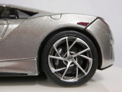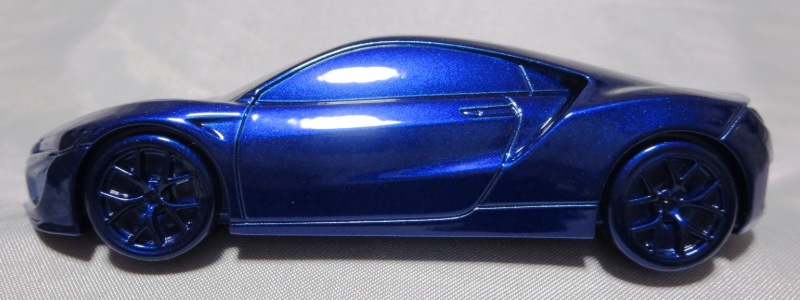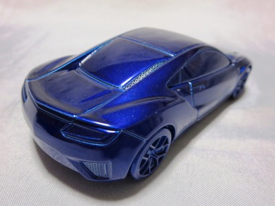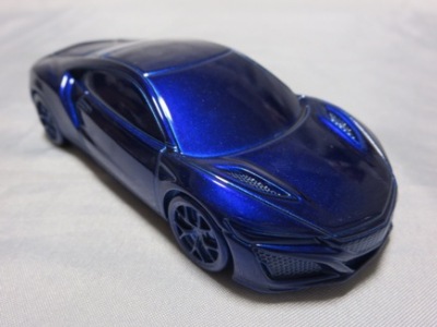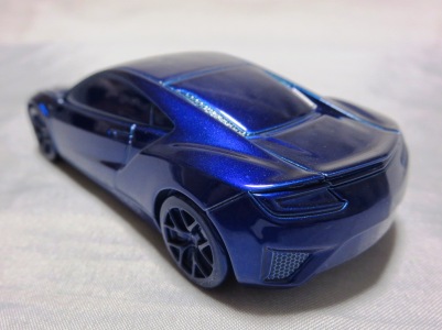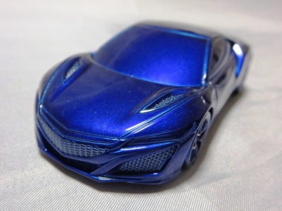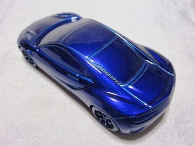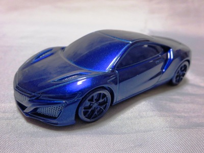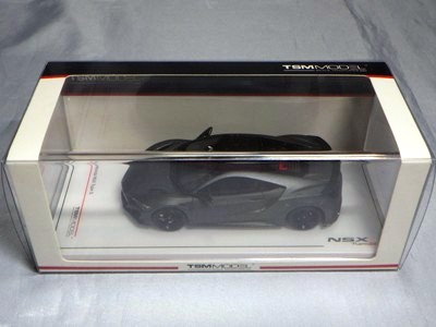 2012年8月に発売されたアヴェンジャーズアキュラに引き続き9月に発売された第1世代のアキュラNSXコンセプト。2012年1月にデトロイトで開催された北米国際オートショーで最初にお披露目されたシルバーの車をモデル化した物。ウインドウは全てブラックアウトされ、内装は見えず、いかにもコンセプトカー然としたものになっている。実車は、2月には青山でホンダ仕様が公開され、4月の北京モーターショーにはバスクレッドパールUに塗り替えられたアキュラ仕様が展示されたが、10月のサンパウロ国際モーターショーでは再びシルバーに戻された。これらが別個体なのか同一個体なのかは不明。アヴェンジャーズアキュラと違って、日本国内ではほとんどネット販売もされず、ネットオークションには2013年12月に初登場し、2か月の間に3台が出品されたのみ。現地価格はアベンジャーズアキュラと同じ70香港ドル。2013年1月開催の北米国際オートショーで発表された、より生産車に近い第2世代のNSXコンセプトも「アキュラNSXコンセプトII 2013北米国際オートショー(TSM134364)」という商品名で2013年内に発売が予定されていたが、2014年に発売延期。そちらの現地価格は75香港ドルで、国内の某ショップでの発売予定価格は8,316円となっていた。 |