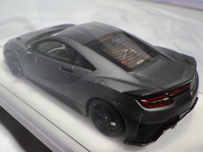 アメリカ・カリフォルニア州で毎年開催されているモントレー・カーウィークのイベントの1つ、「ザ・クエイル・モータースポーツ・ギャザリング」が2015年にも8月中旬に開催され、入場券は600ドル(約75,000円)もするのだが、美しくレストアされたクラシックなスポーツカーやレーシングバイクから最新スーパーカーまで間近で見ることができるとあって即完売。そこに3台展示された新型NSXの中のベルリナブラックVer.を宮沢模型が限定販売したものが本商品。基本的には北米国際オートショーと同じ仕様だが、ルーフ、メーターバイザー、リアスポイラーがカーボン仕様になり、内装色がオレンジ系に変更、リアガラスに1/18モデル同様の熱線フィルムが再現されるなど、オプション装着車を再現しているものと思われる。宮沢模型は模型ホビー業界では最大手の問屋で、卸売業務の他、自社企画による模型、各メーカーに製造委託したOEM製品を販売しているが、完成品フィギュアやプラモデルの限定カラー版を自社流通限定品として企画販売することも行っており今回もその一環。Amazonでは2015年11月19日より定価の11,880円で予約 受け付けを開始。2016月2月29日発売予定だったが、2月3日に発送を開始し、2月4日に届いた。実際のAmazonでの販売価格は9,635円となった。ちなみに予約のみで即完売かと思いきや、2月4日22:00現在、Amazonには2台の在庫があり、追加の入荷予定もあるとのこと。 |
