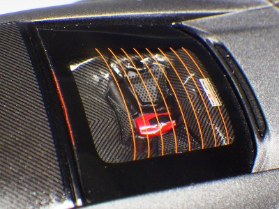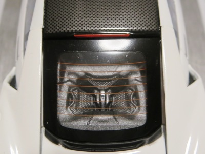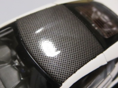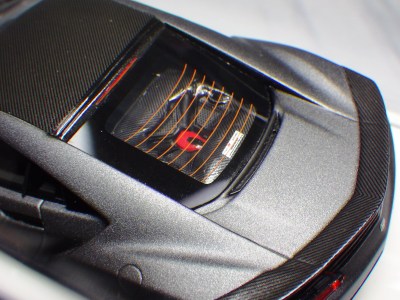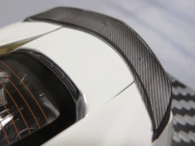 | ▲ルーフのカーボンはツヤありだが、リアスポイラーはツヤなしの仕上げ。 | |