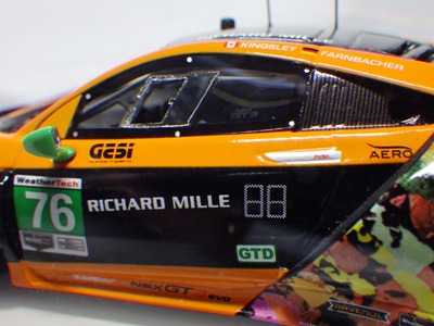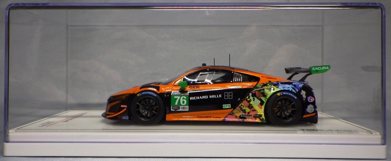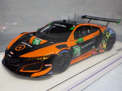 2019年9月13日発売。4種同時に発売された1/43モデルのうちの1台。 TSM430299のプレゼンテーションカー同様に、これをモデル化しているメーカーはTSMのみであるが、以前に1/18や1/64がリリースされていたプレゼンテーションカーと異なり、モデル化されたこと自体今回が初めてとなる。 プレゼンテーションカーと外観はほぼ同じで、差し色がレッドからオレンジになっていること、ホイールがシルバーからブラックになっていること、リアフェンダーとリアウイングの翼端版に文字が入らないことなどが数少ない相違点。 今回同時発売になった4種のうちプレゼンテーションモデルのみがホンダ仕様で、残りの3台はアキュラ仕様なのだが、4台すべてが左ハンドルで内装は同じ。 |