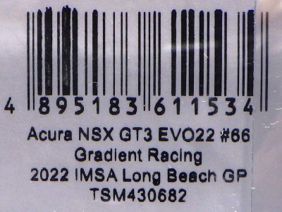 1/43 TSM430682 アキュラ NSX GT3 EVO22 IMSA ロングビーチGP 2022 #66 Gradient Racing /\15,000税別・\16,500税込/サンリッチジャパン |