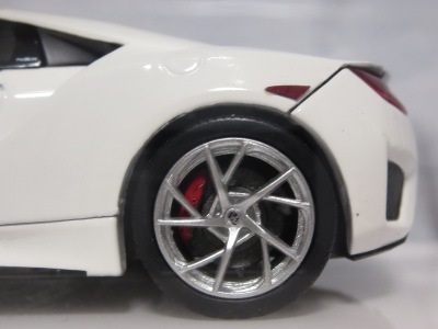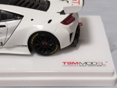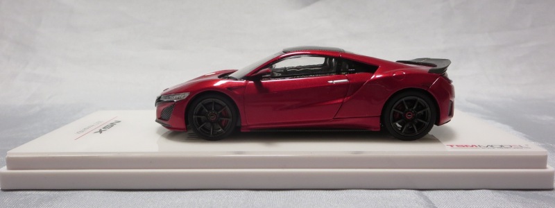 2018年2月15日にバレンシアレッドパールと同時に発売。 2016年10月に発売された「TSM164388 NSX2017 130Rホワイト(RHD)」のホイールをモデューロのホイールに交換しただけという結構地味な商品(シートがホワイトからブラックに変更され、ナンバープレートが外されているという違いはあるが)。 台座も全く同じで、「Modulo」という文字すら追加されていないのは残念。 |