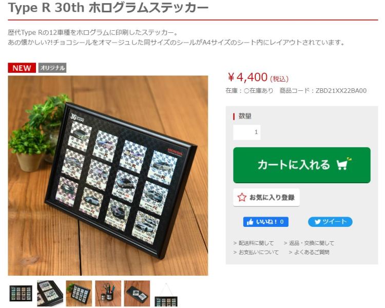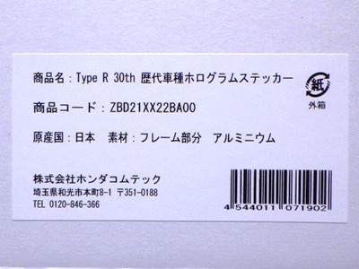| Type R 30th 歴代車種ホログラムステッカー | |