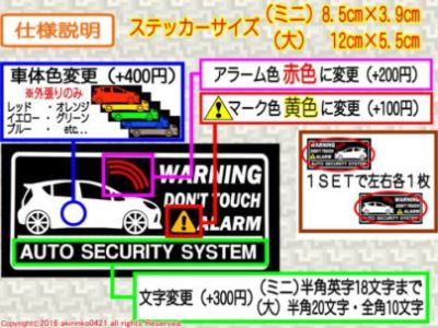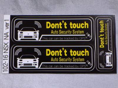2022年2月22日にCS-0102シリーズ3種、2月23日にPS-0102シリーズ3種の計6種の車種別警告ステッカーNSXバージョンがヤフオクに初登場。 香川のK氏が制作されたもの。 PSシリーズは55×103mmの中に3枚のステッカーが収まるブラックベースにホワイトとイエローの文字が入る商品で、価格は1,000円。 CSシリーズは44×130mmサイズの商品で、今回は全18色の中からホワイトを選択。価格は520円。 いずれも送料は無料で、取扱説明書が付属。 品 番の0102はホンダを表し、枝番の16はNA1、17はNA2、18はNC1を表す。 |